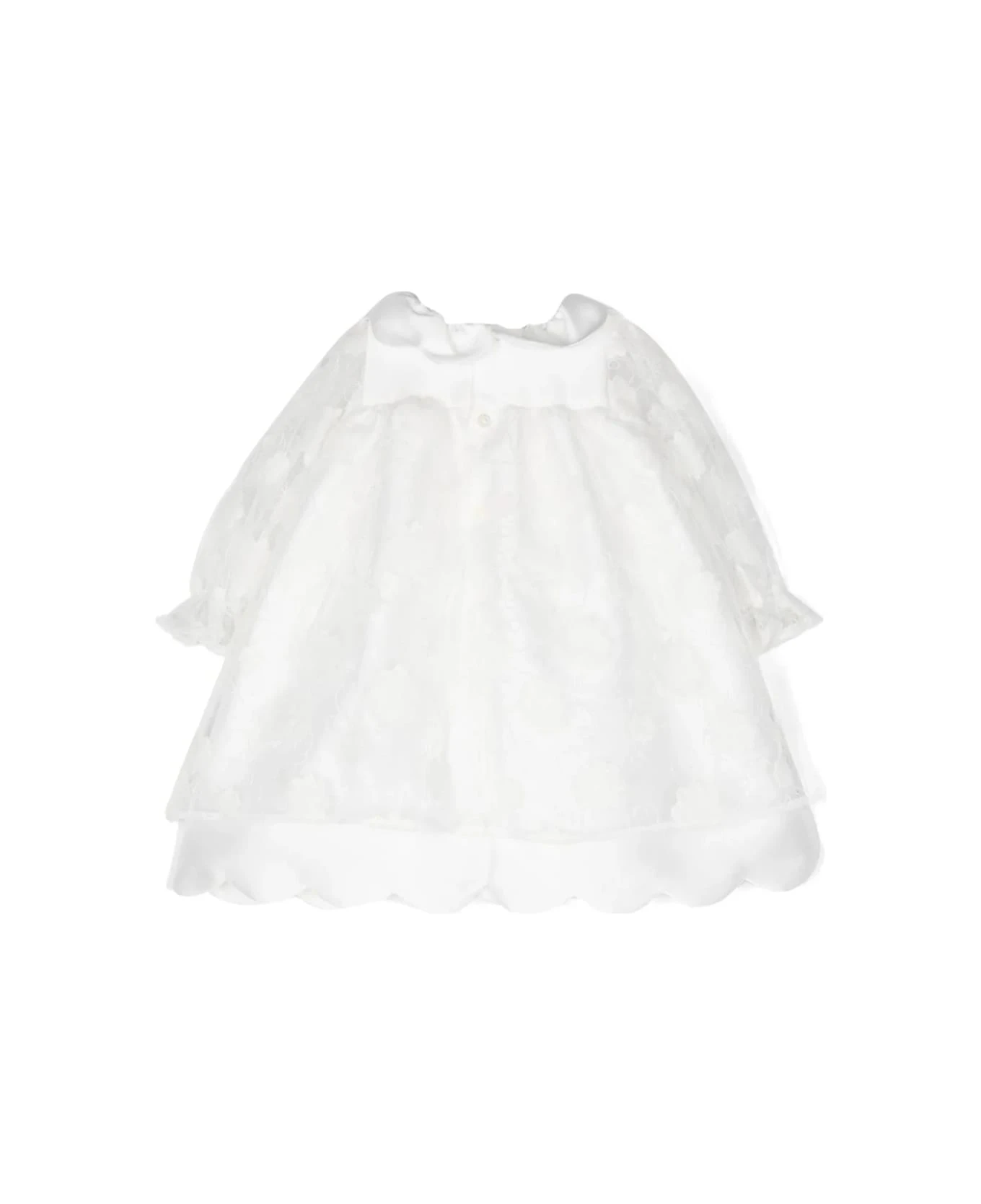 Abito da cerimonia Bianco,misto lana, colletto a smerlo, chiusura posteriore con bottone, maniche lunghe e larghe e orlo a smerlo. Esterno: Acrilico 35%, Lana 35%, Nylon 20%, Poliestere 10%