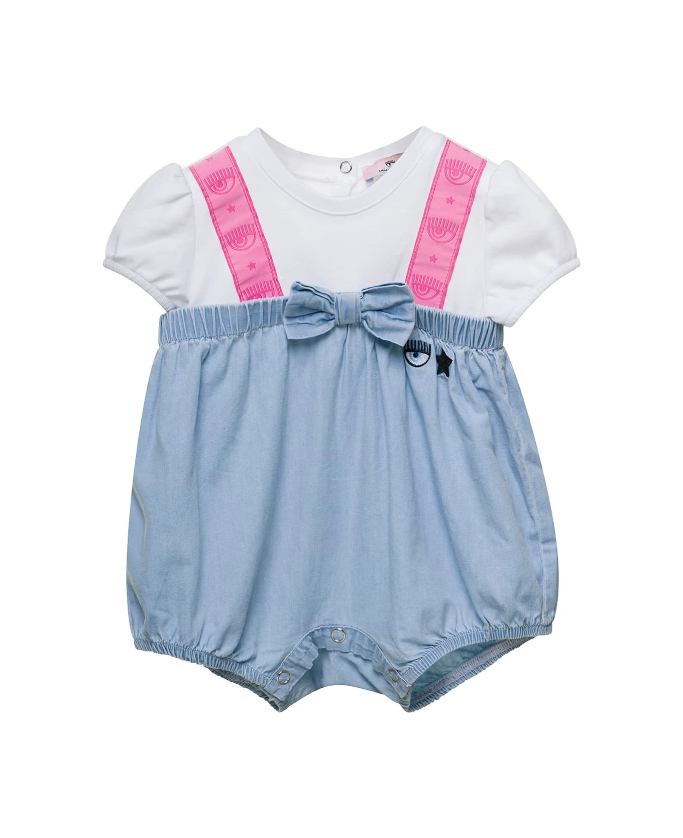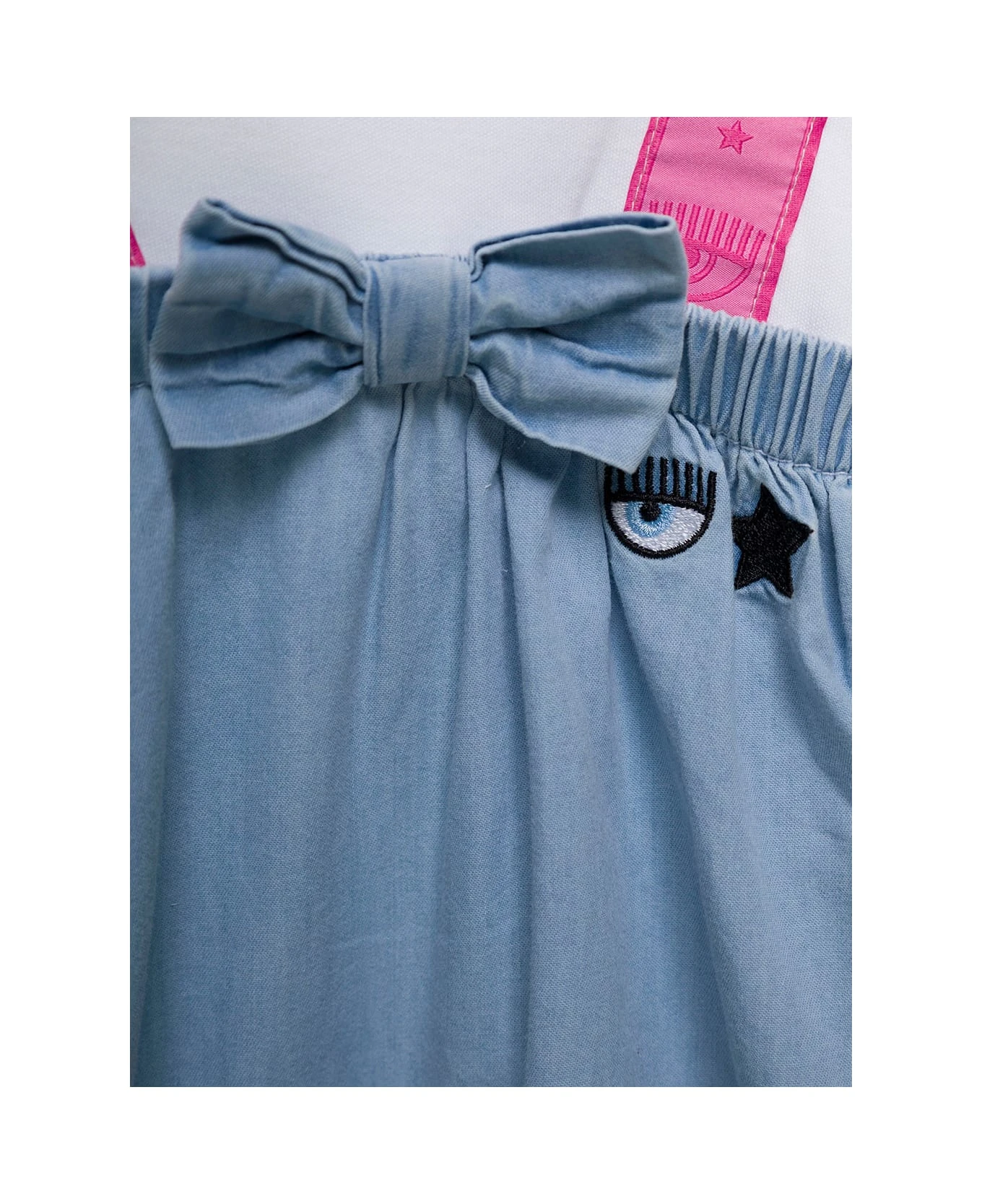 Chiara Ferragni Multicolor Dungarees Romper Suit With Logo And Bow Detail In Cotton Baby
