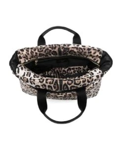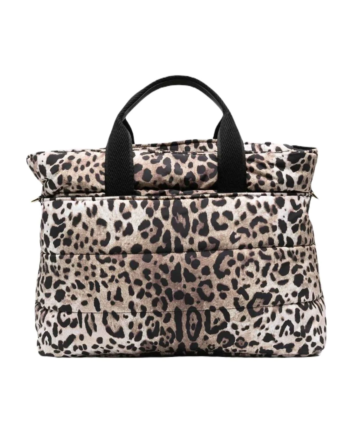 brown bag baby unisex. Leopard print, logo plaque, top zip closure, two round handles, adjustable and removable shoulder strap, main compartment and front slip pocket. 100% polyester