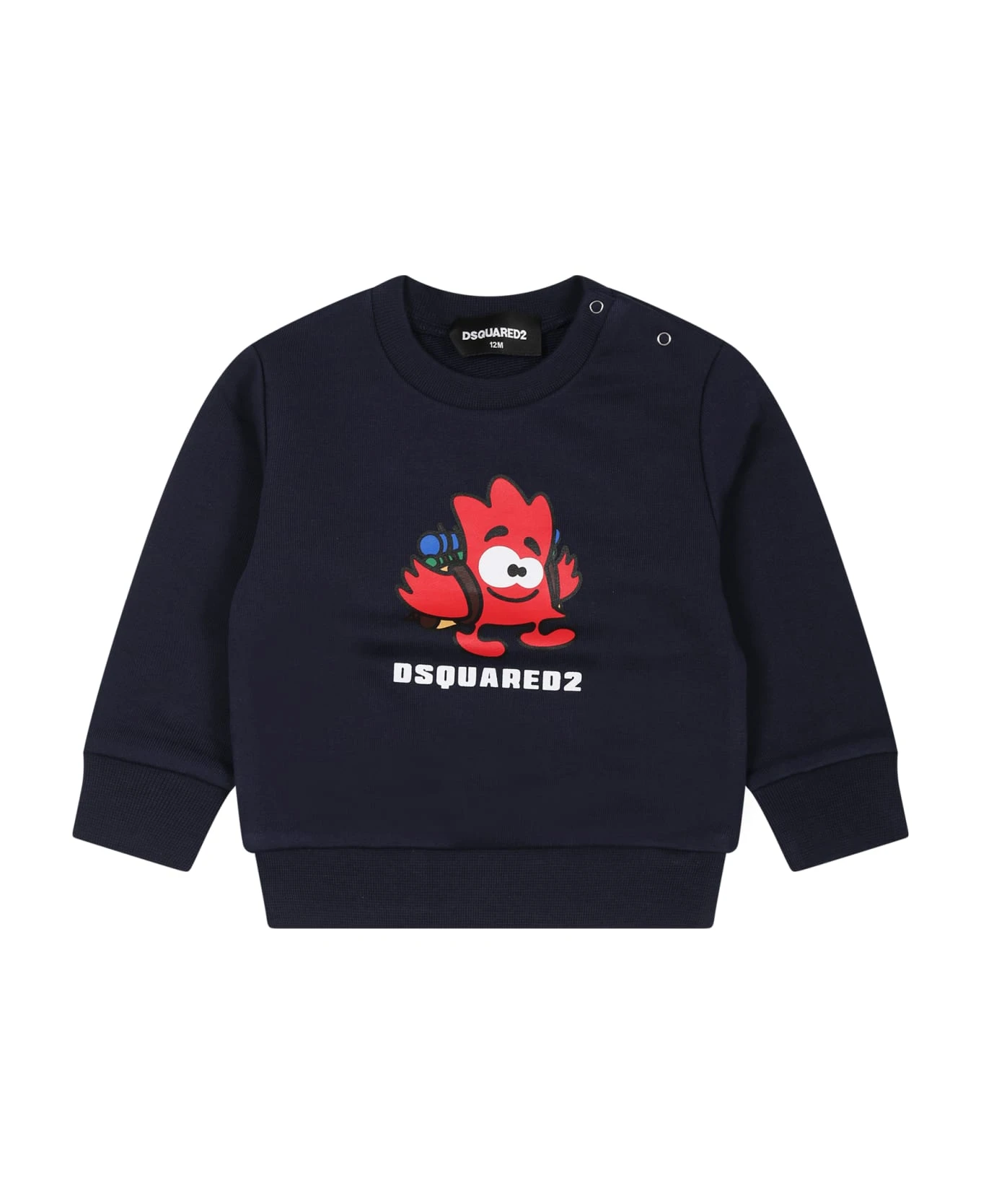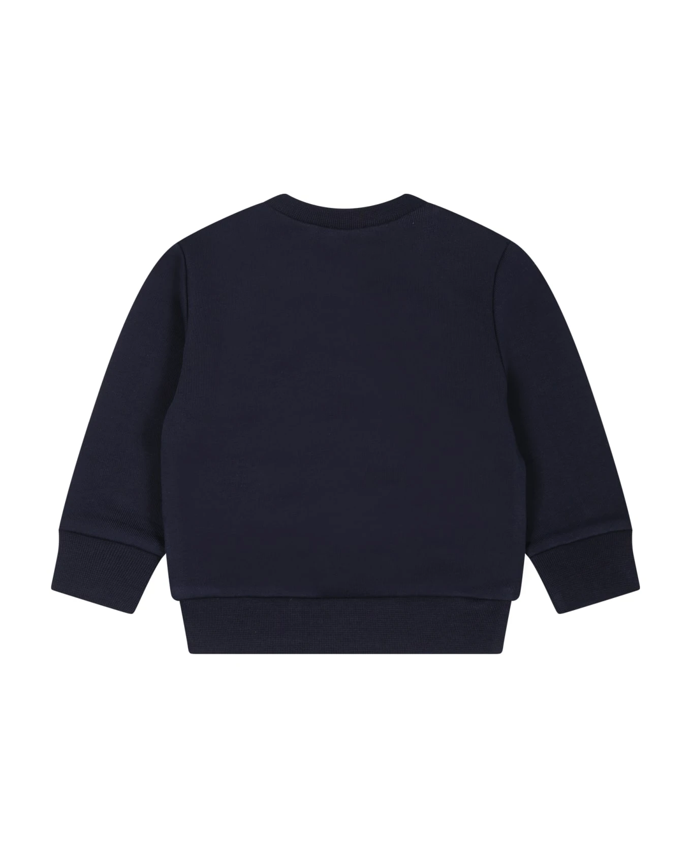 Blue sweatshirt in brushed cotton, with long sleeves, with ribbed crew neck, cuffs and hem and snap button closure on the shoulder. It is embellished with maple leaf and logo, on the front.