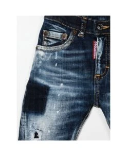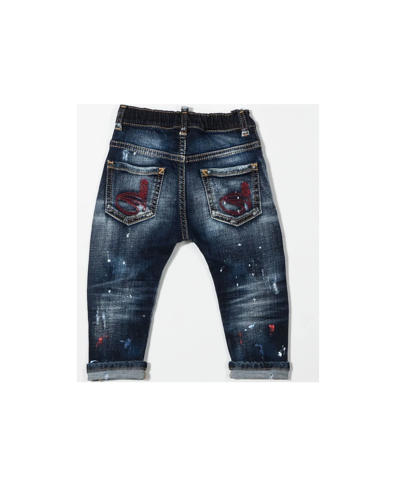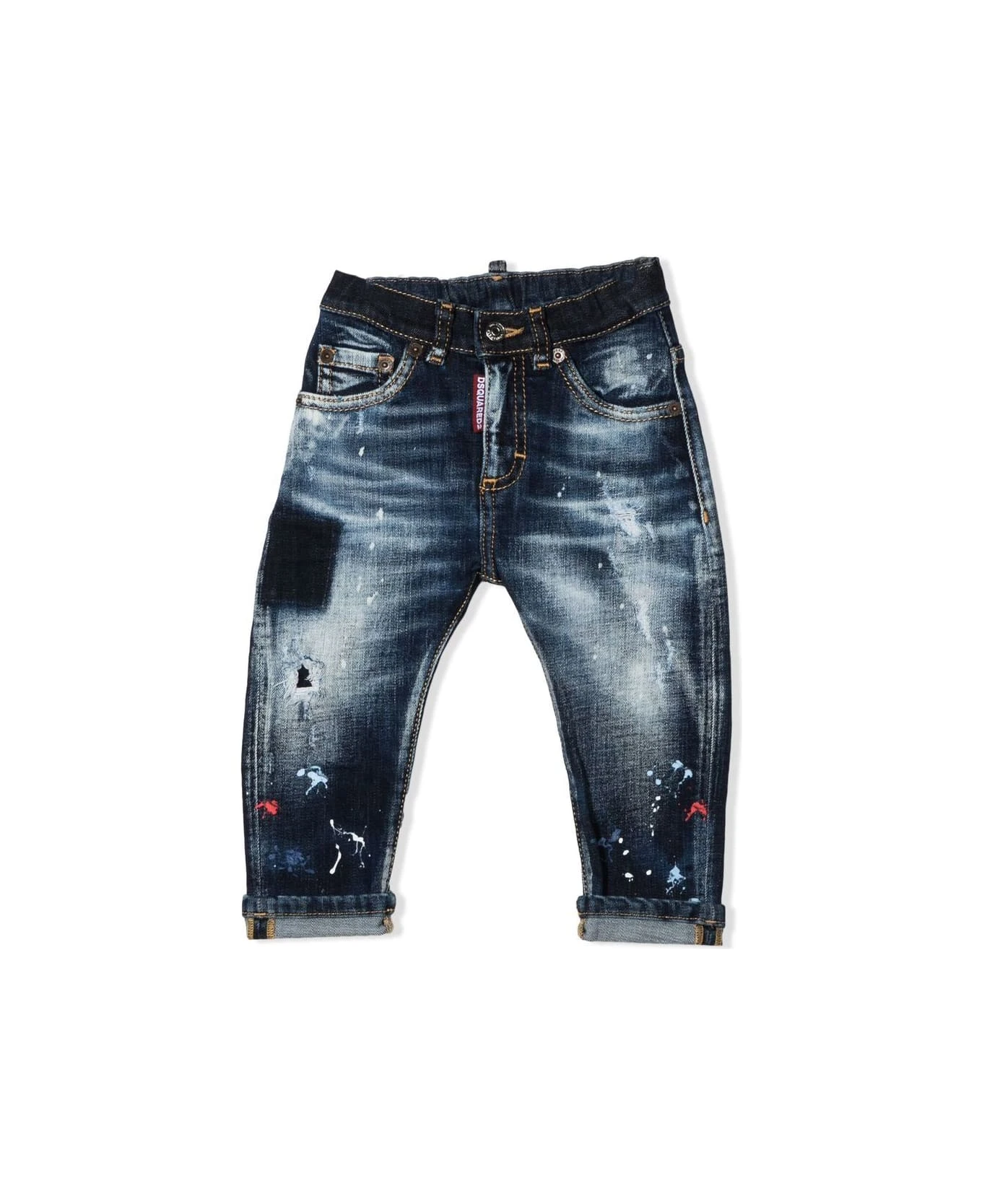 distressed slim jeans from DSQUARED2 KIDS featuring indigo blue, cotton blend, distressed effect, mid-rise, slim cut, button fly fastening, classic five pockets and turn-up hem.