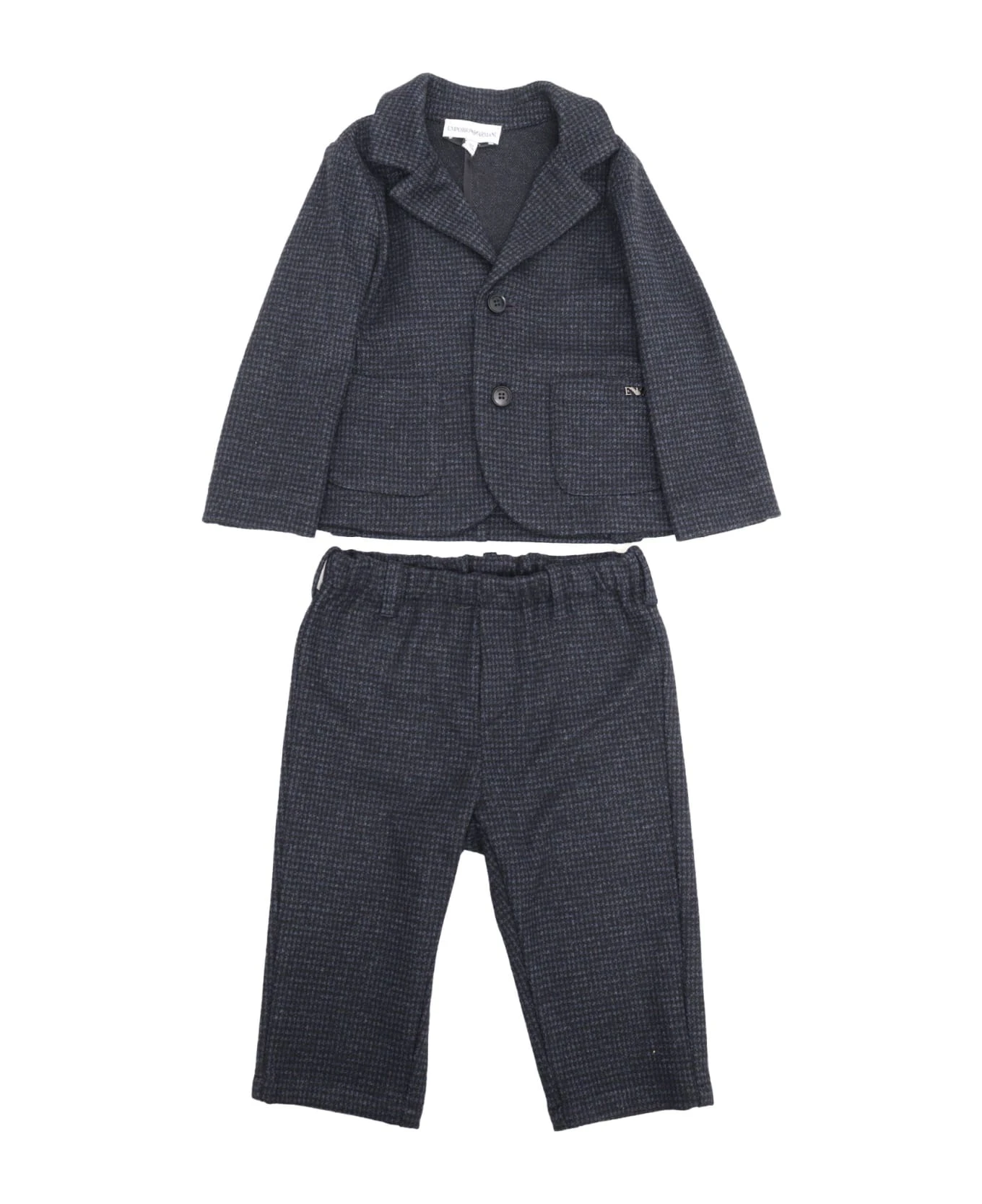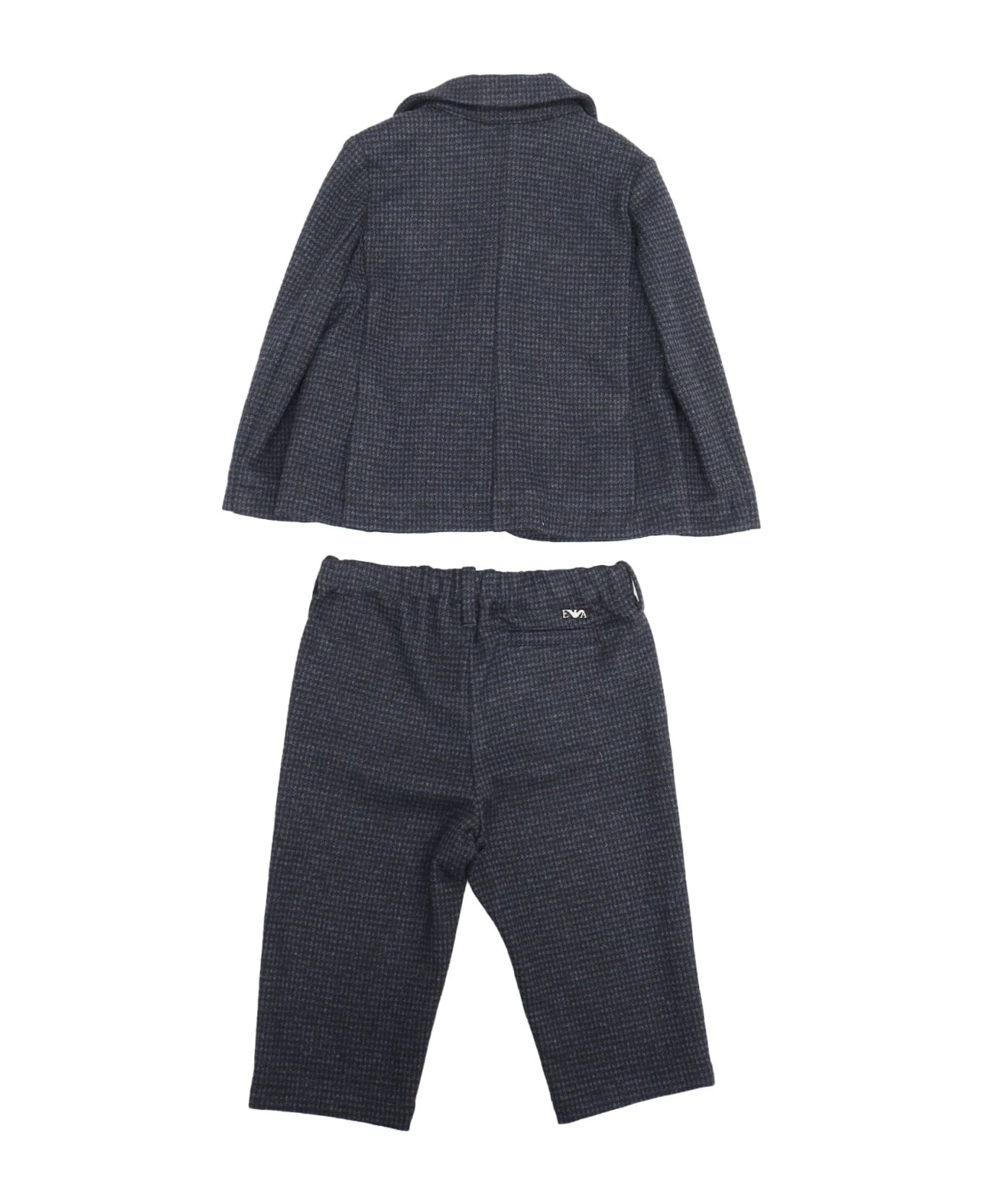 Stretch viscose suit, single-breasted jacket, lapel collar, patch pockets, logo, pants with elasticated waist, belt loops, back pocket, logo