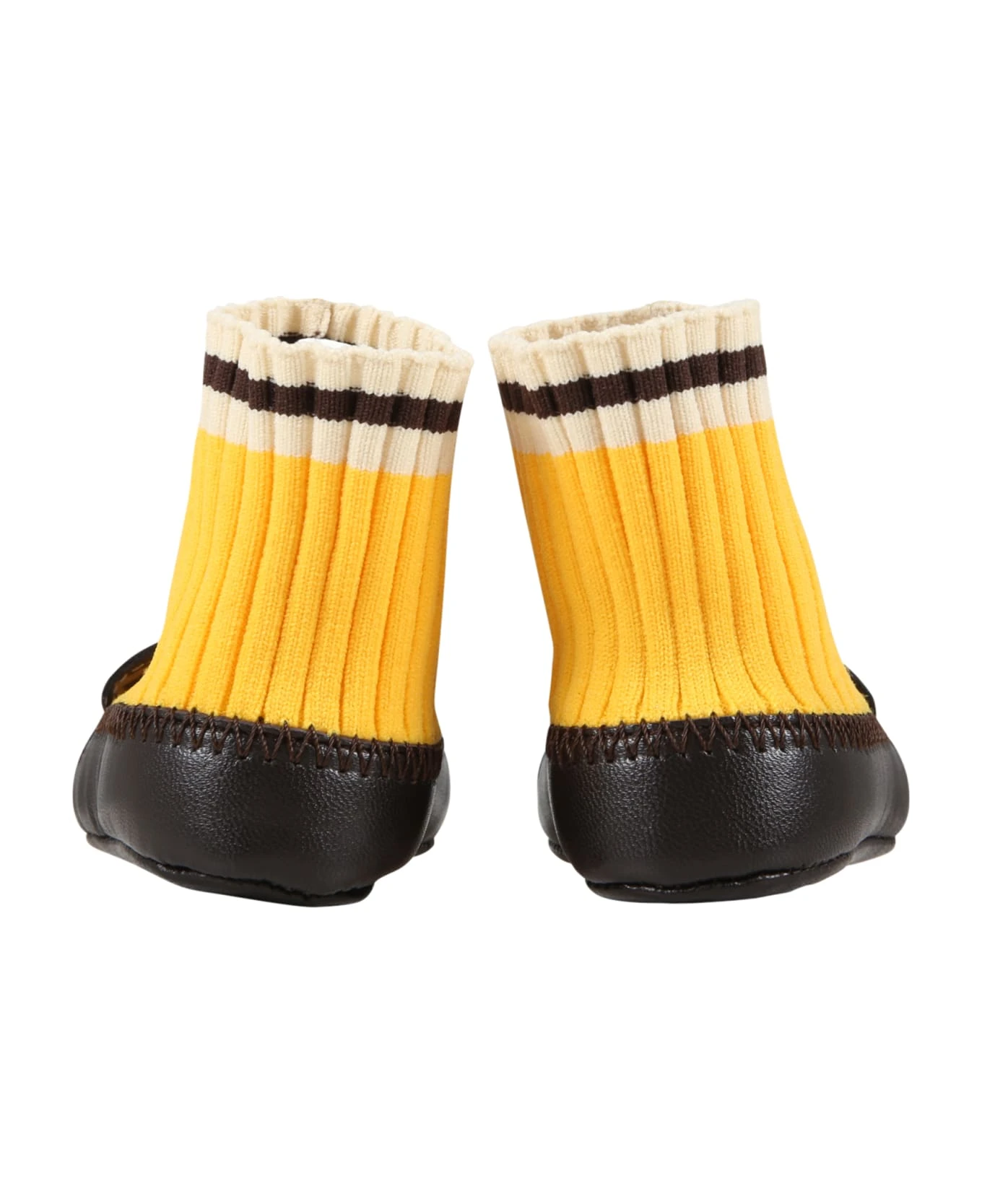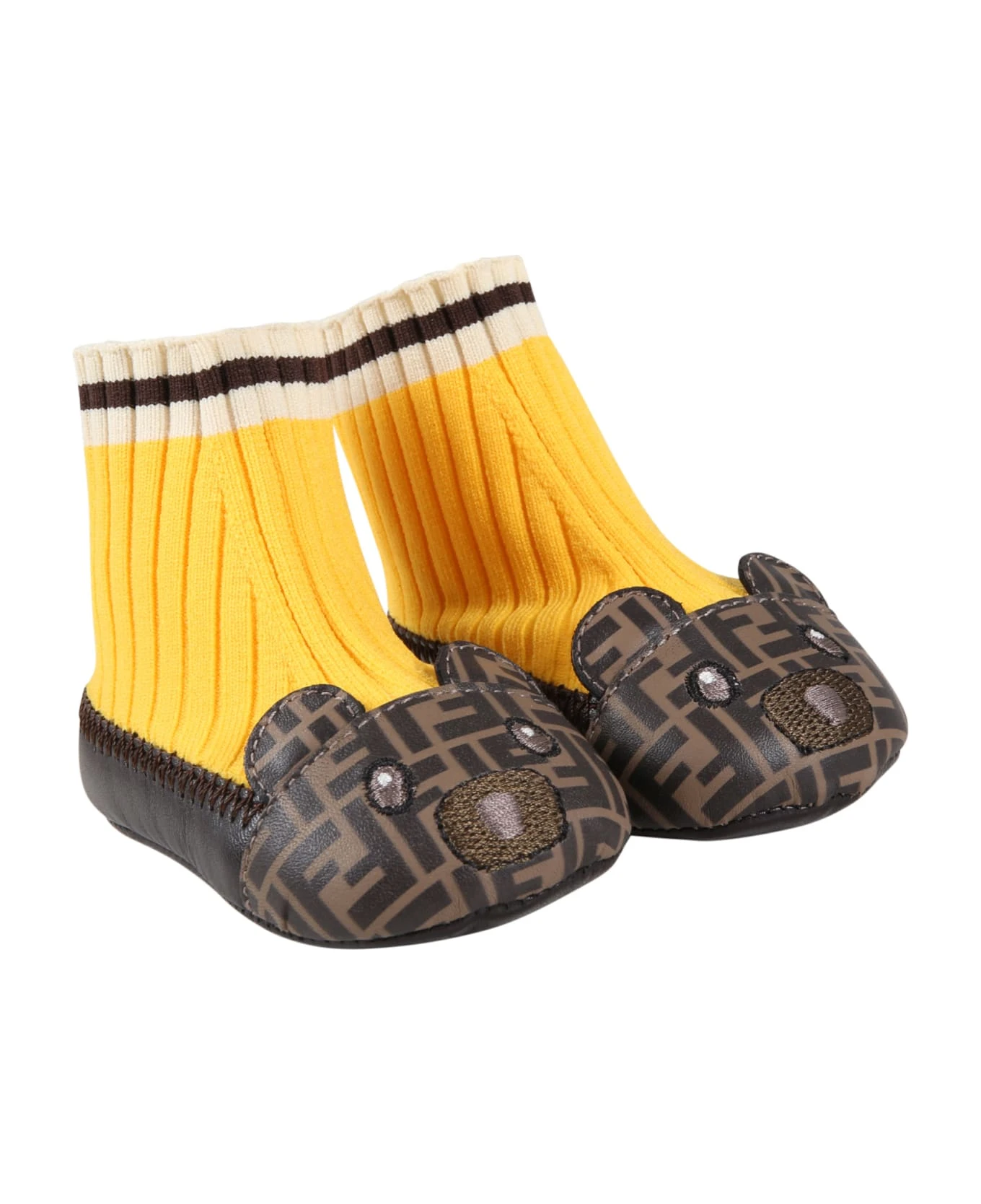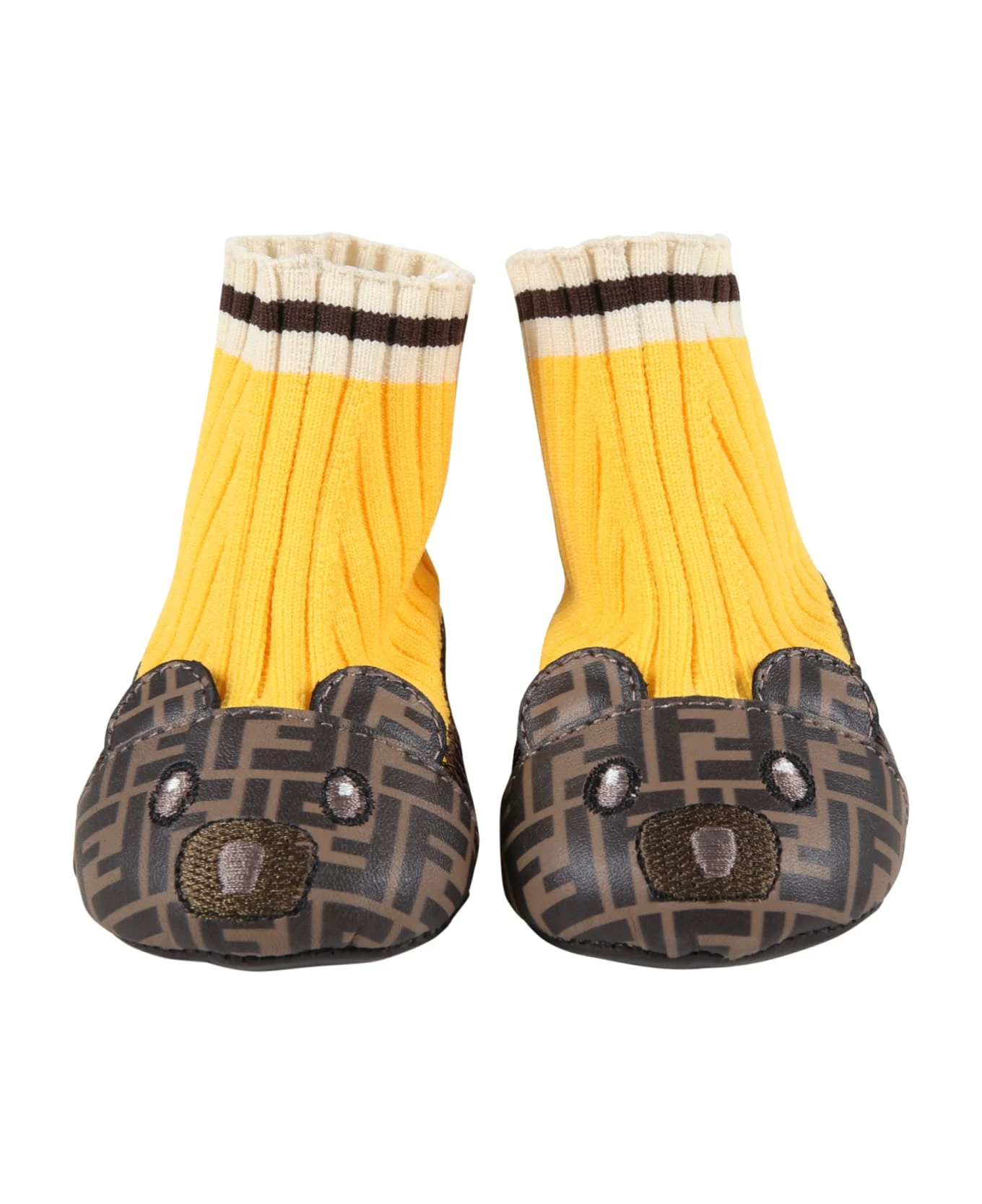 Multicolor ballet flats, with yellow ribbed legs; it is embellished with double FF and bear on the front.