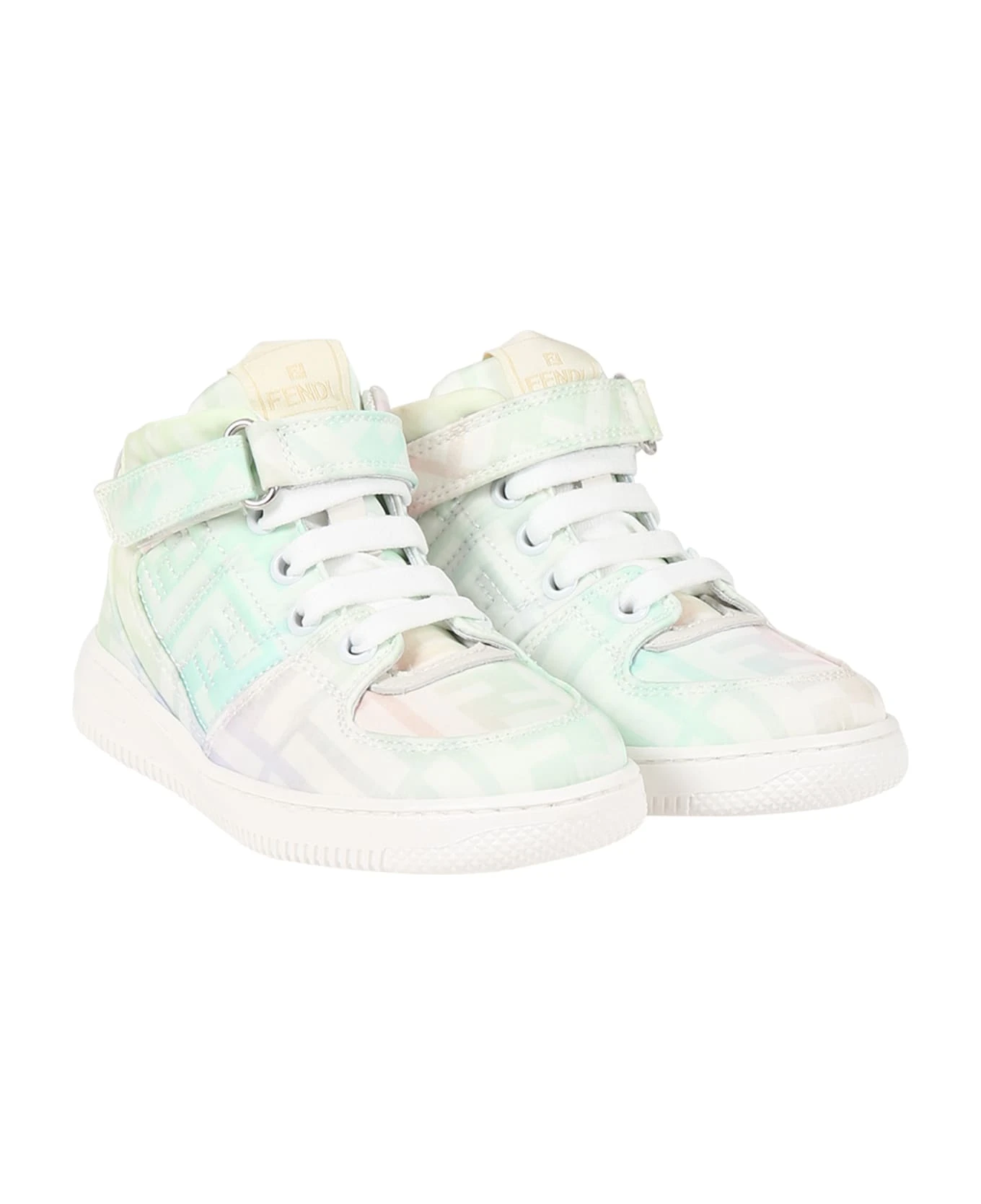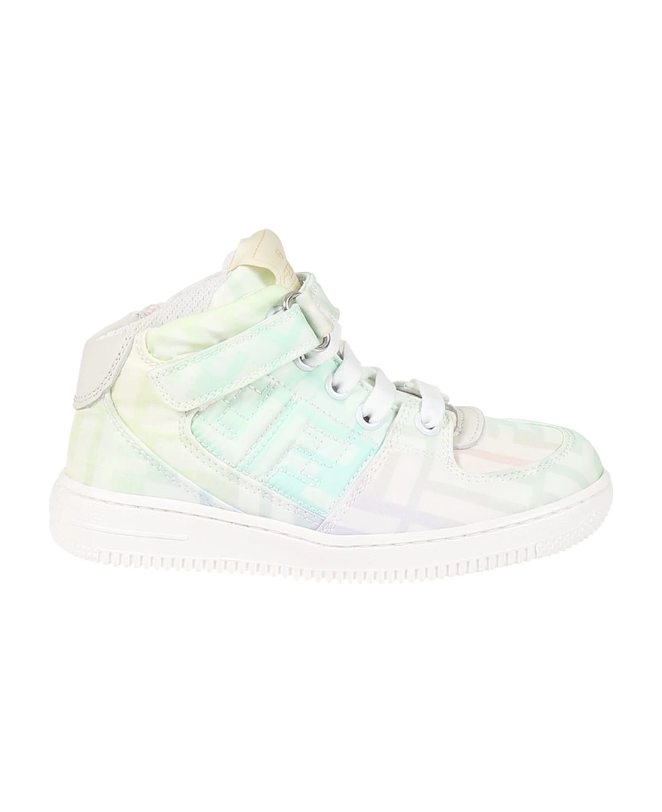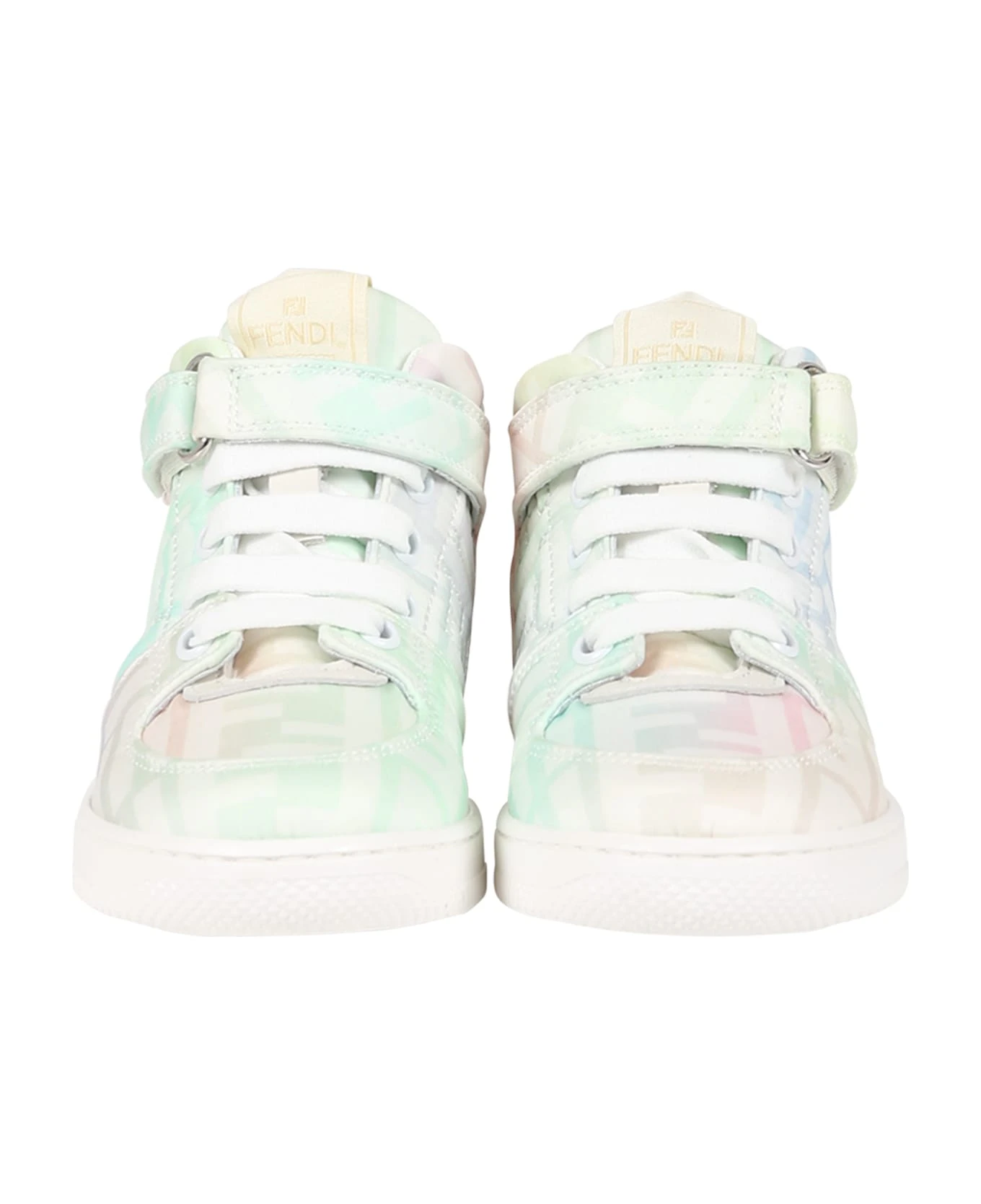 Multicolor sneakers, with rubber sole, laces and velcro strap closure, round toe. They are embellished with double FF on the sides and all-over.