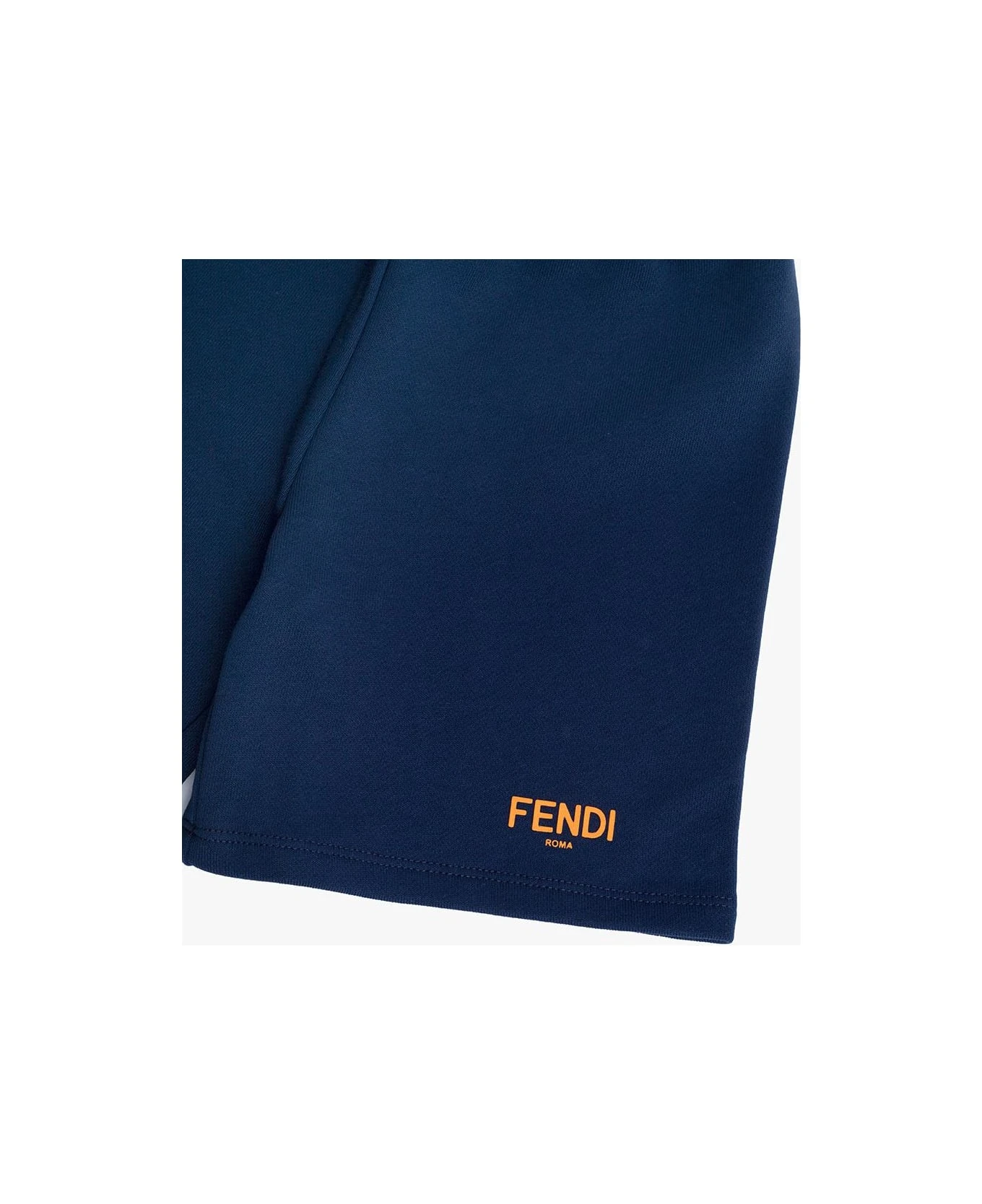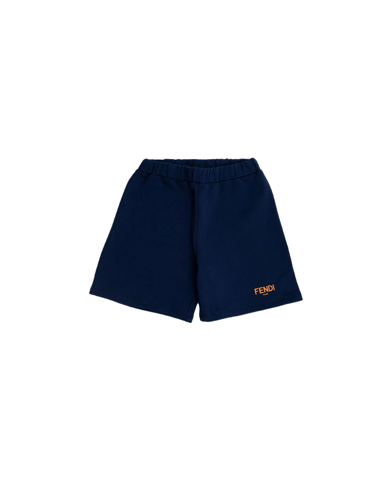 Navy blue shorts from Fendi Kids. Made of cotton, this pair features an elasticated waistband and an orange graphic print with the brand’s logo.
