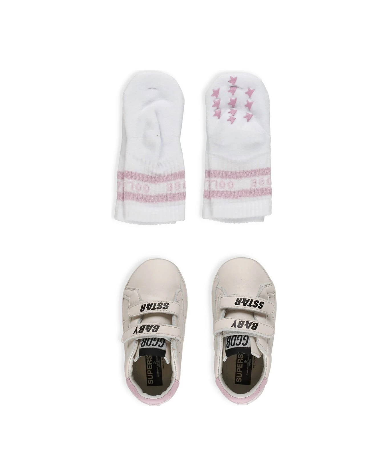 Baby School Set from Golden Goose: – White and pink Golden Goose sneakers and socks set for girl