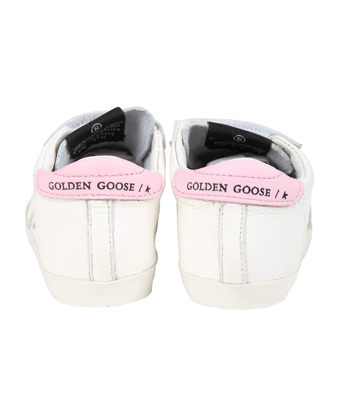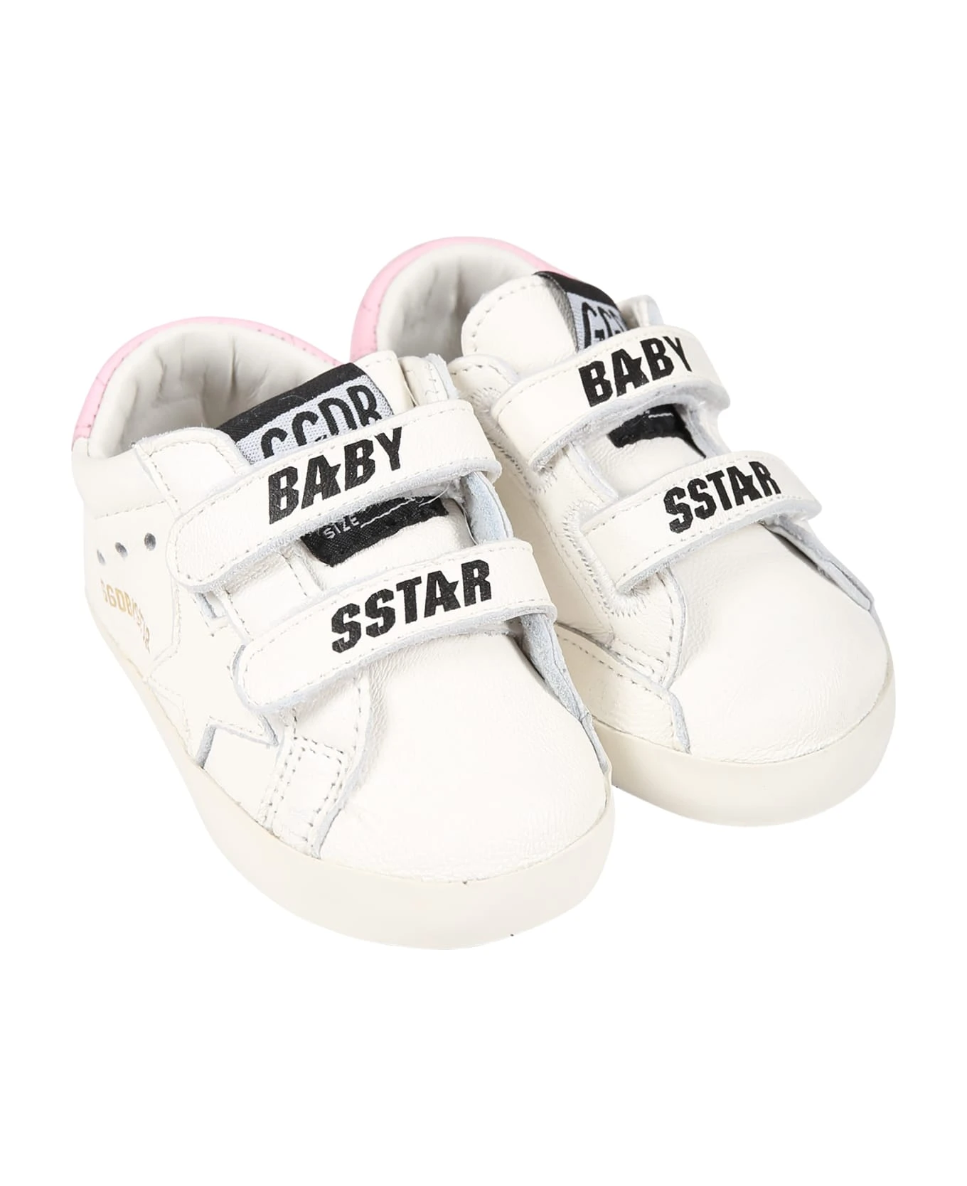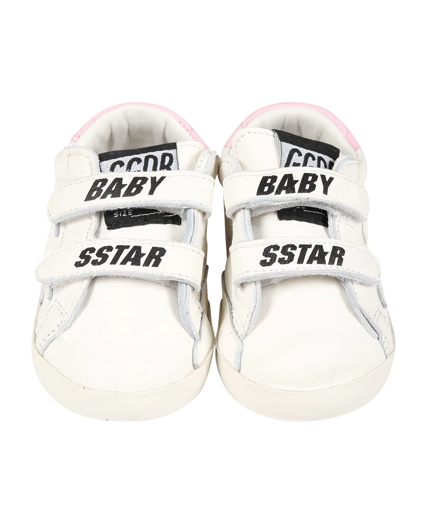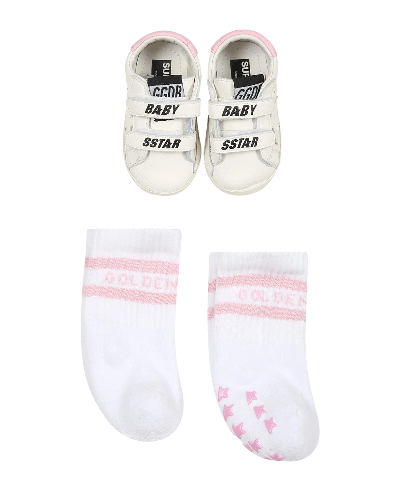 White set composed of sneakers and two pairs of socks; leather sneakers, with rubber sole, double Velcro closure, breathable holes, pink heel tab; they are embellished with star and logo on the side and Baby Star writing on the top. White socks with ribbed hem and non-slip details on the sole; they are embellished with pink logo on the sides.
