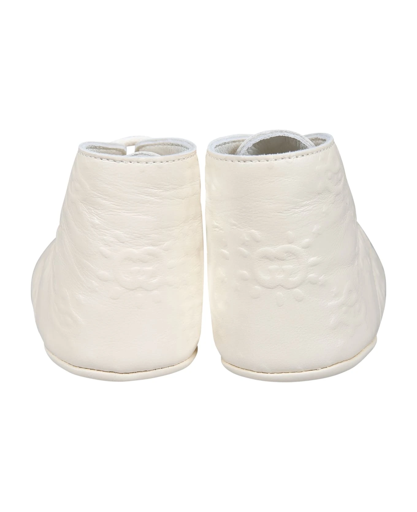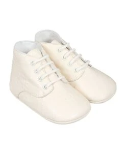 Ivory lace-up shoes in embossed leather, with lace-up closure. They are embellished with the iconic GG cross and embossed all-over ufo.