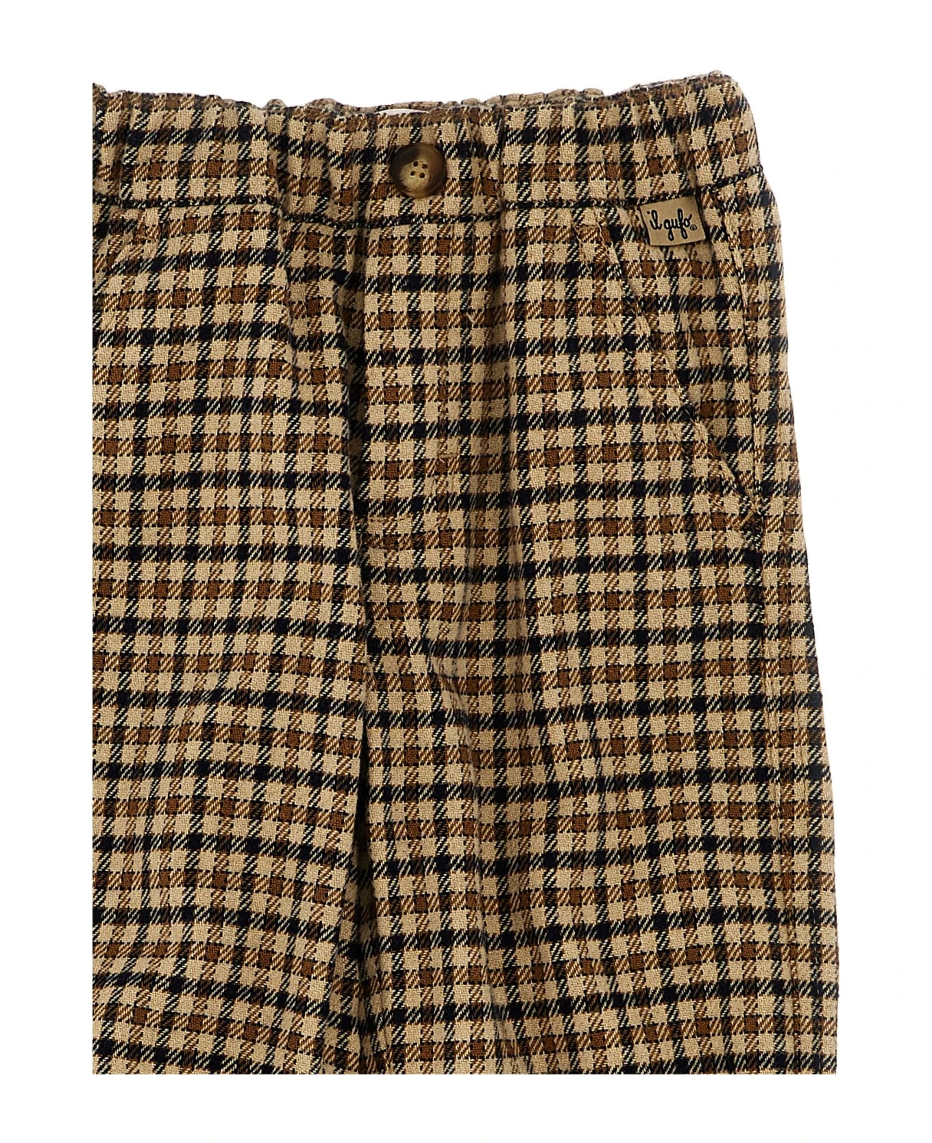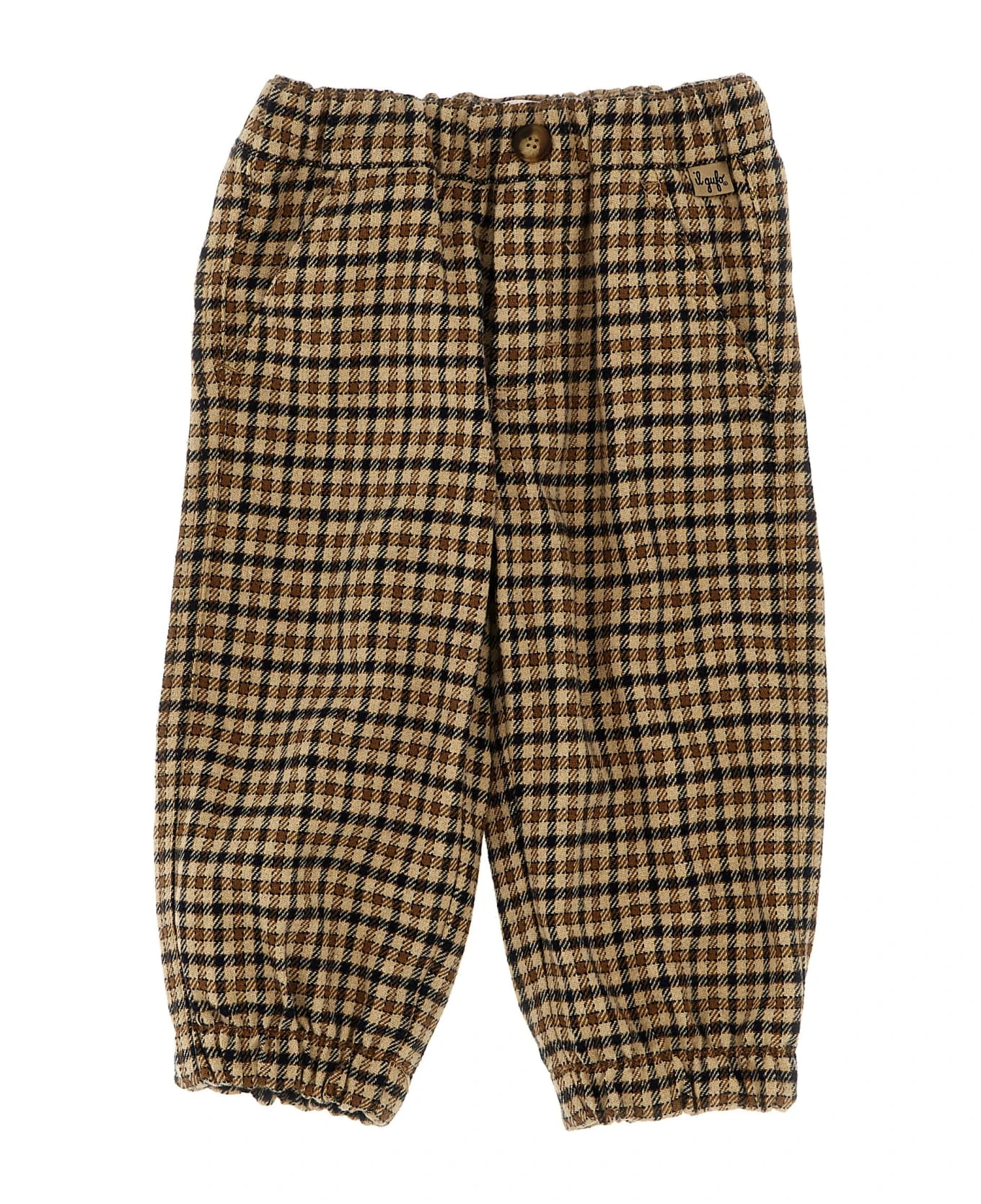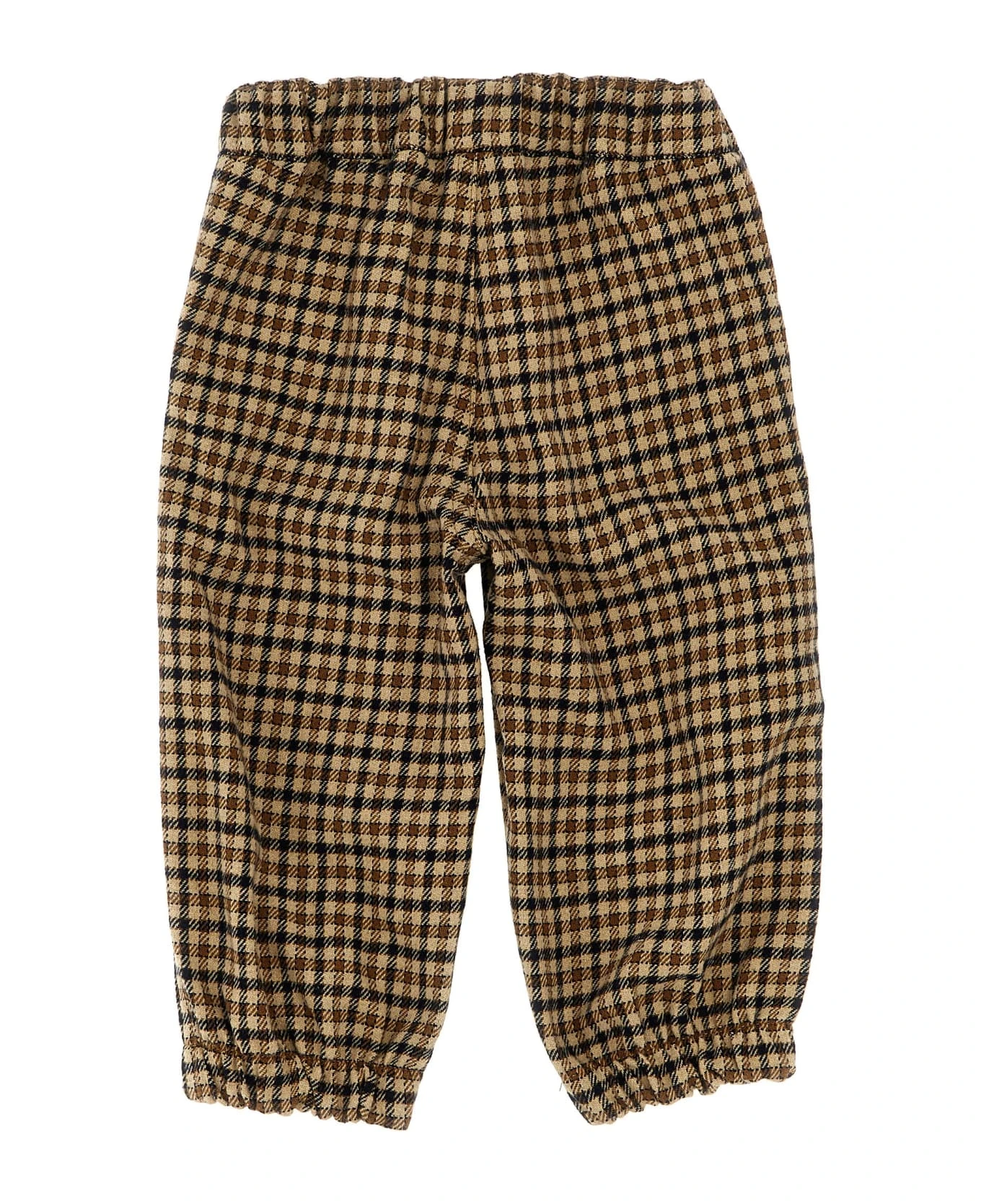 Check cotton blend flannel pants, elastic waistband, pockets.