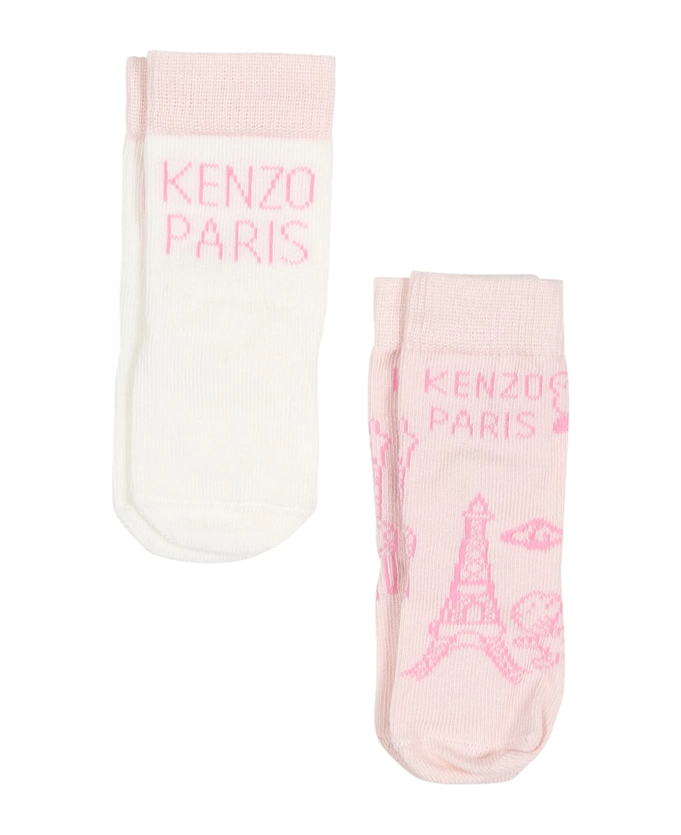 Pink set composed of two pairs of socks, one white with logo embroidered on the front, the other pink with logo embroidered on the front and all-over designs.
