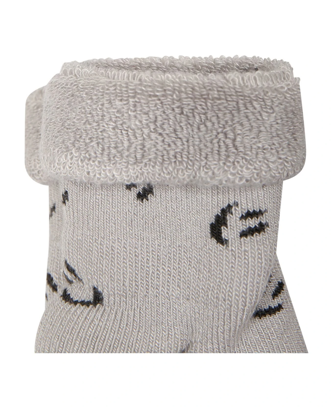 Grey set composed of two pairs of socks, with cuffs. They are embellished with smileys and logo.