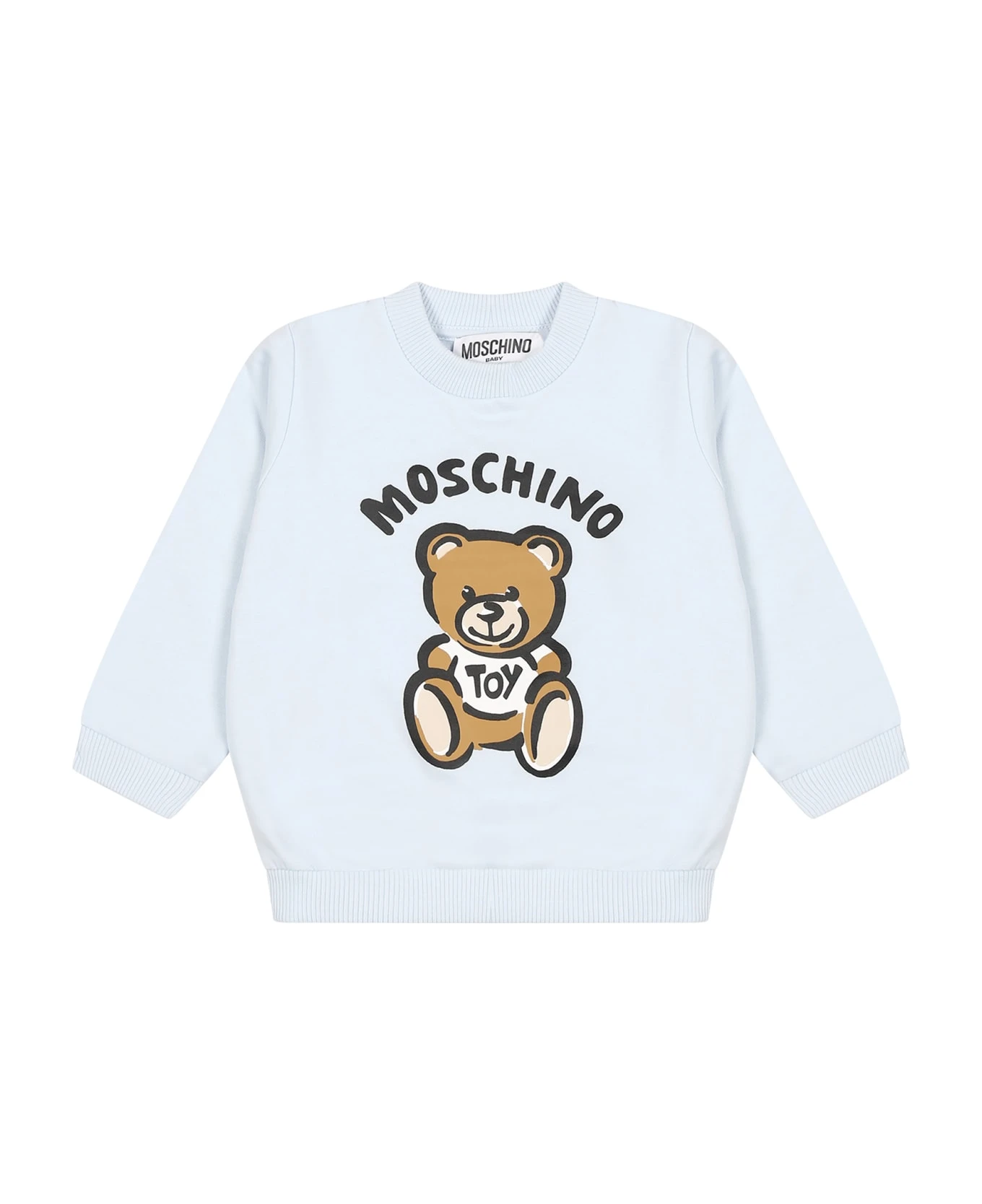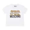 Ivory sweatshirt in fleece cotton, long sleeves, with ribbed crew neck, cuffs and hem, button closure on the shoulder. It is embellished with Teddy Bear and logo on the front.