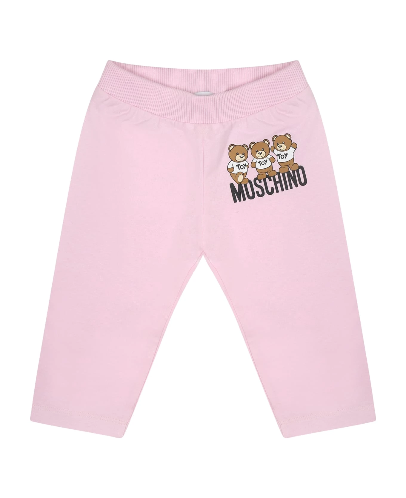 Pink leggings in flleece cotton, with elastic waist. They are embellished with three Teddy Bears and logo on the side.