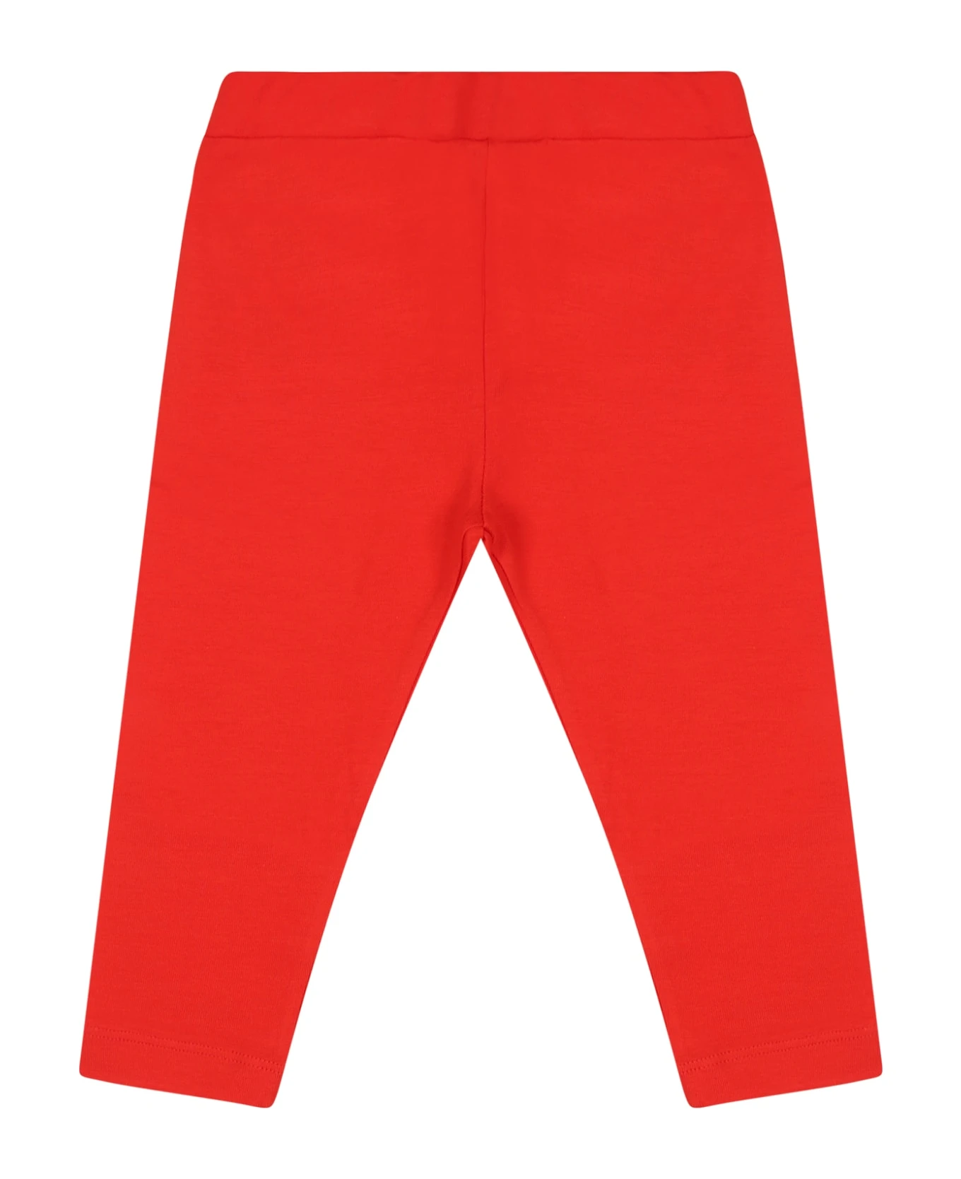 Red leggings in cotton jersey, with elasticated waist. They are embellished with a black logo on the leg.