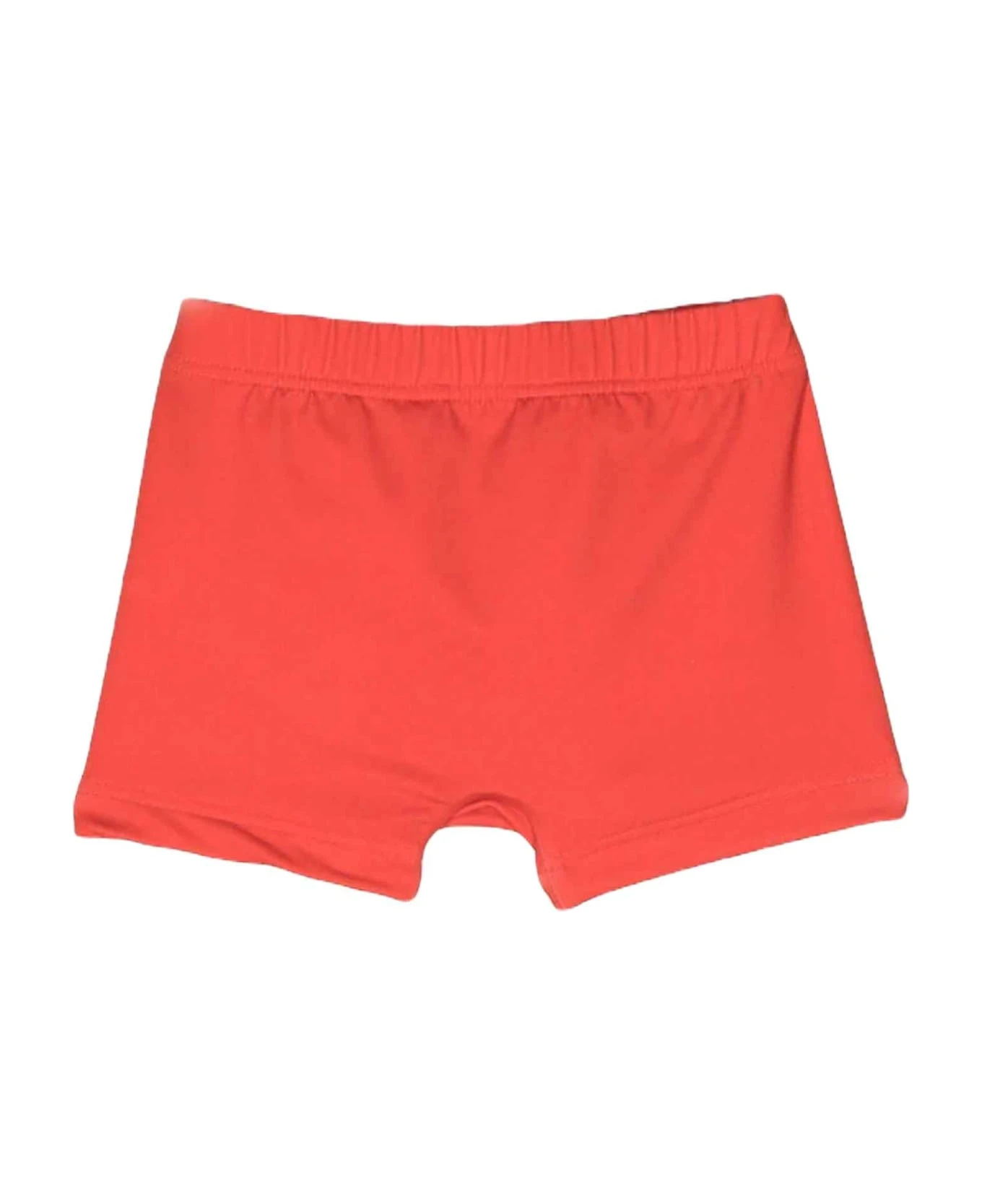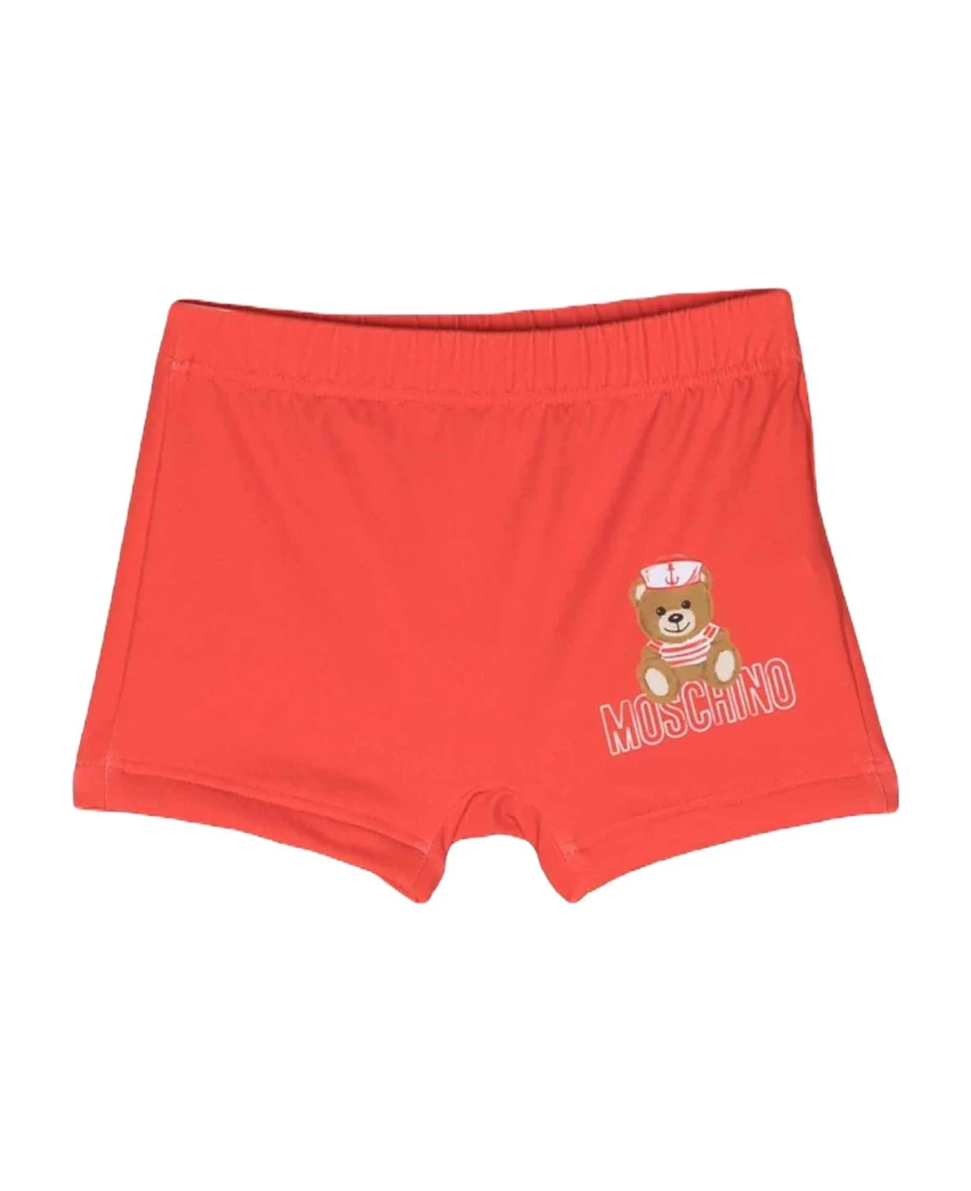 Red swimsuit baby boy. elasticated design, elasticated waist, signature teddy bear pattern and logo print on front. Polyester 77%, Elastane 23%