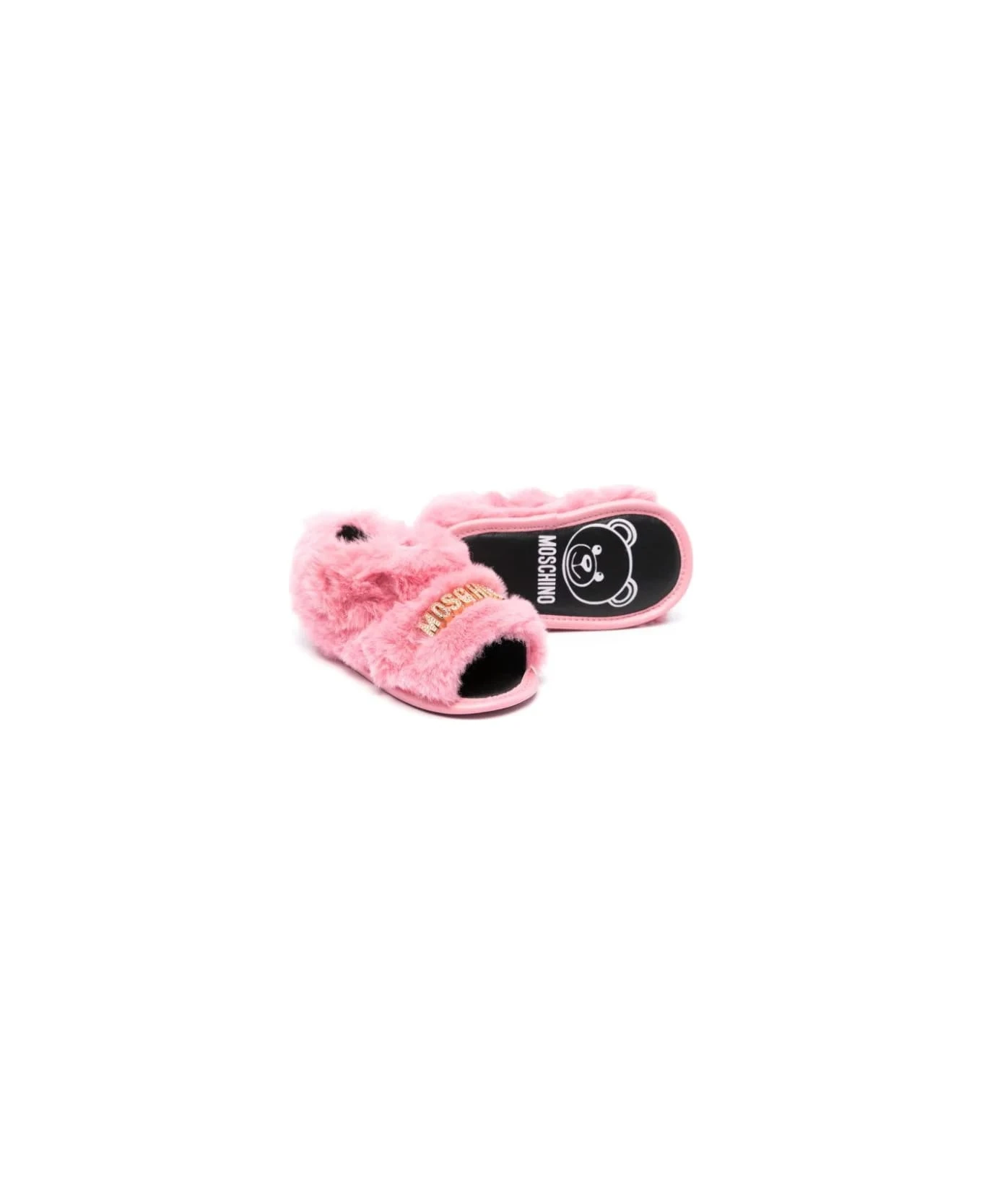 Slippers con logo con placca con logo color oro, punta aperta, soletta con logo e suola piatta. Composizione