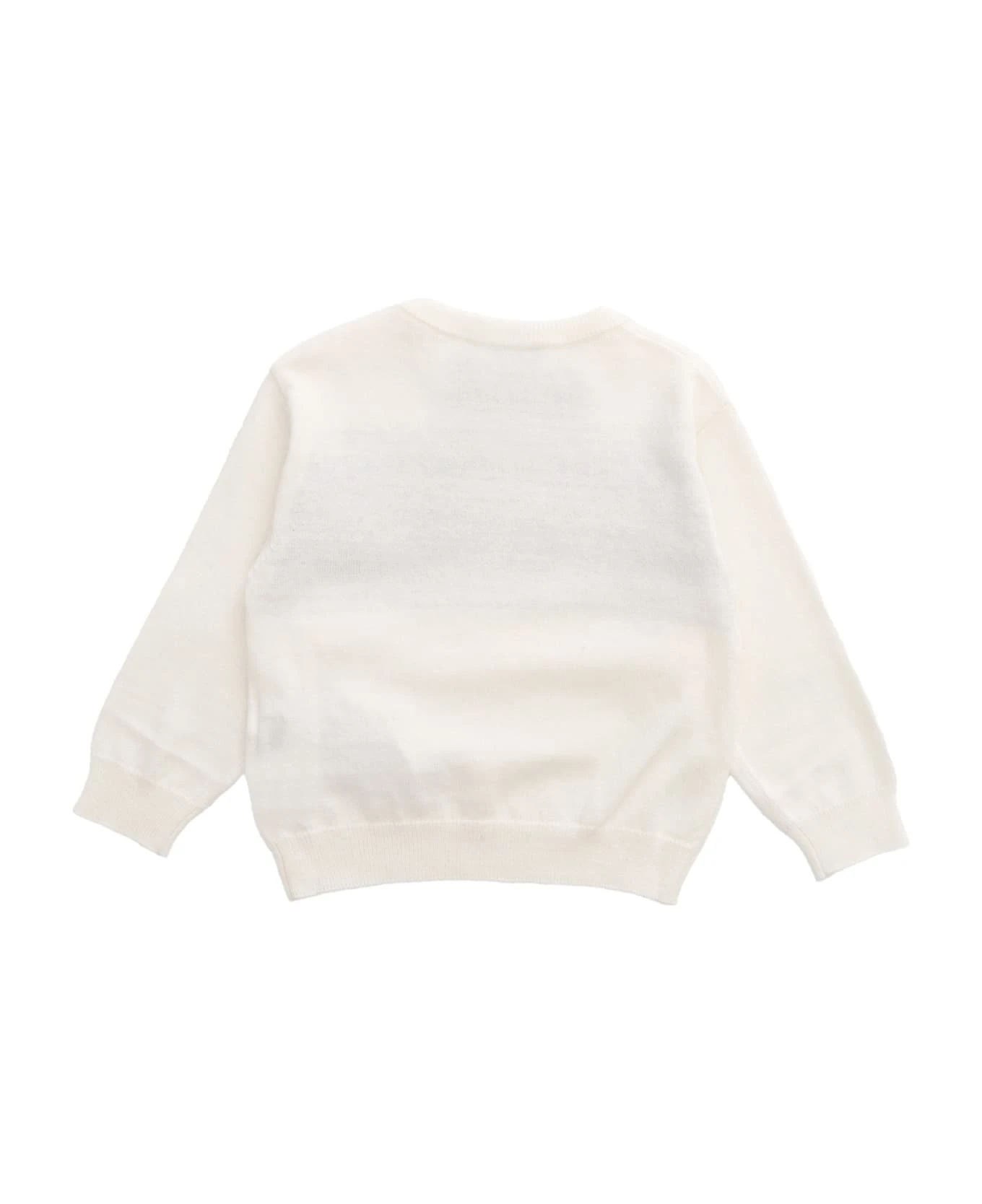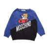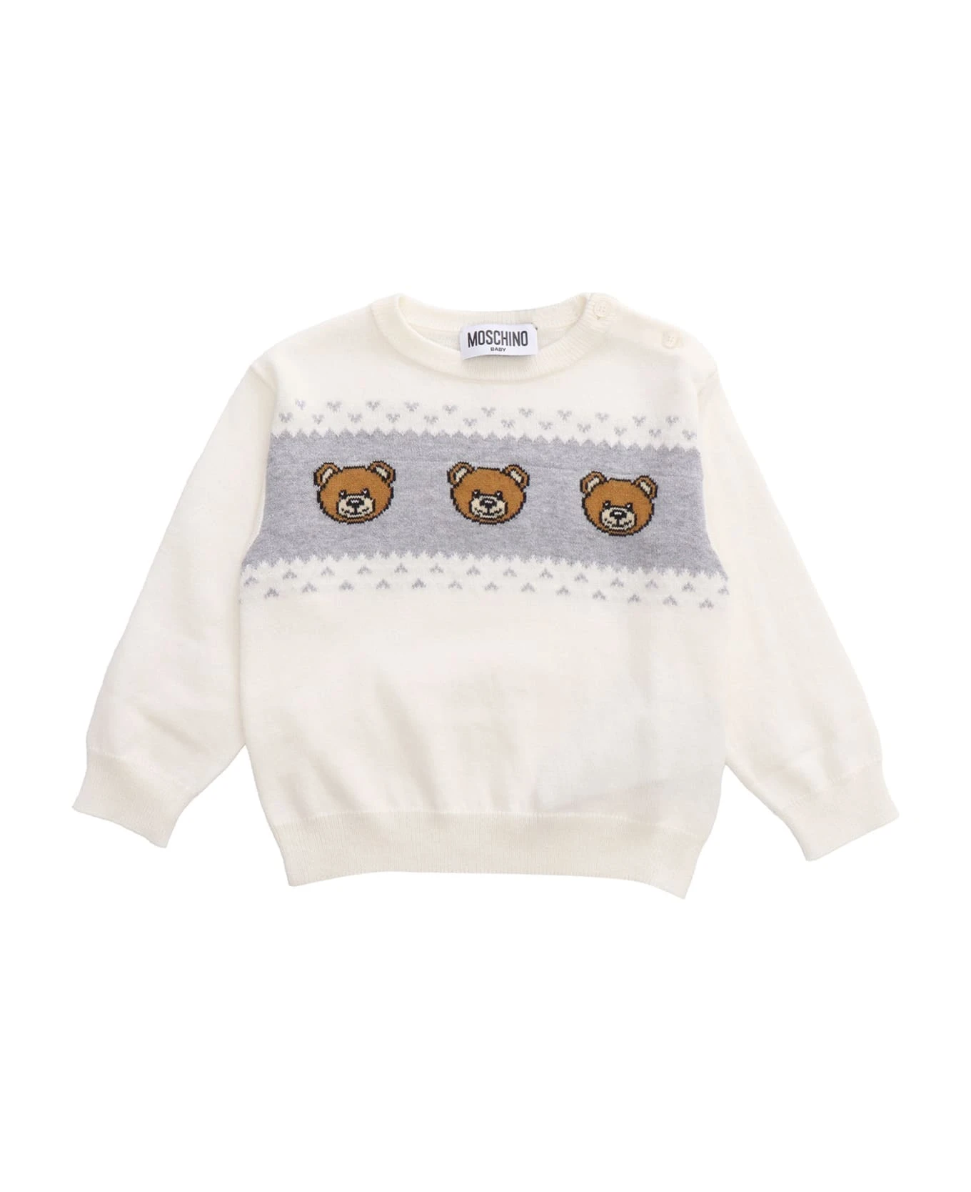 Cotton and wool blend sweater, front Teddy inlay, ribbed edges, button closure on the shoulder, logo