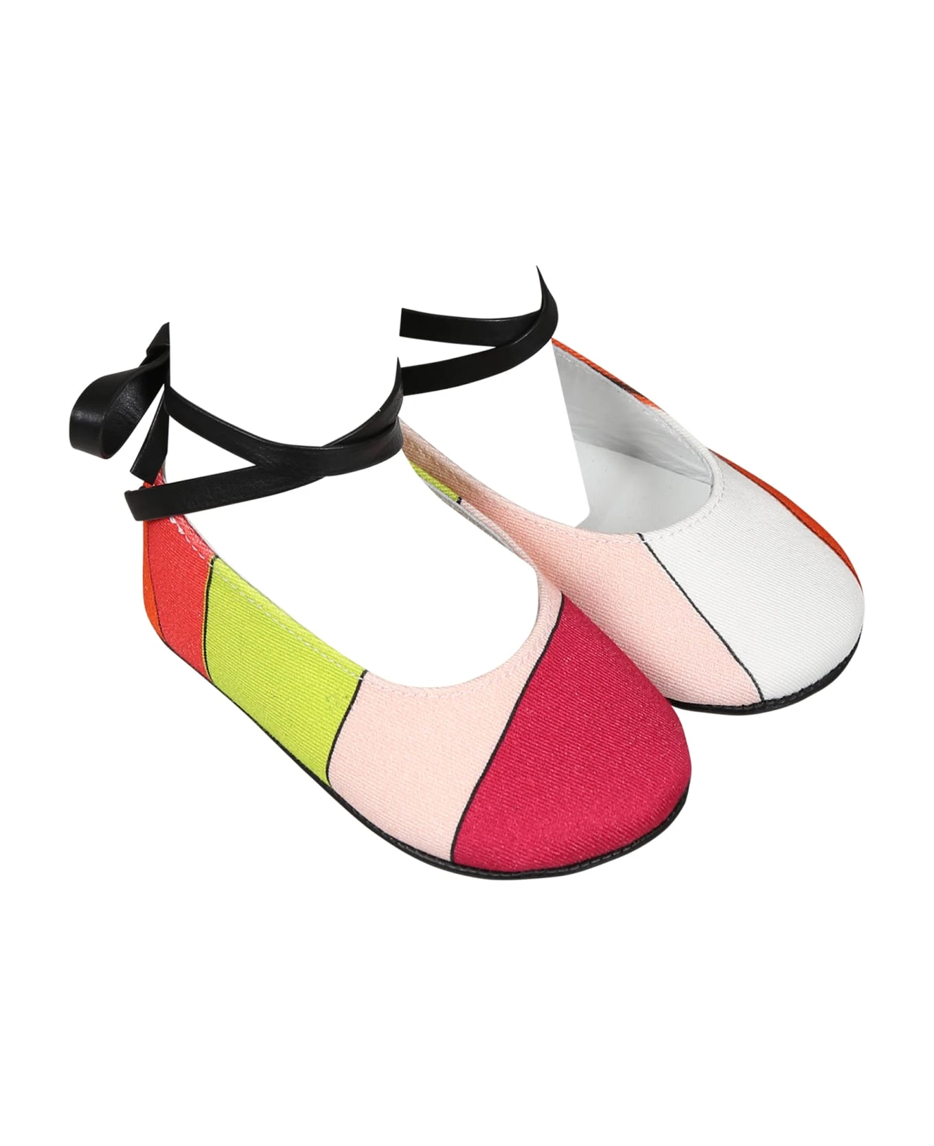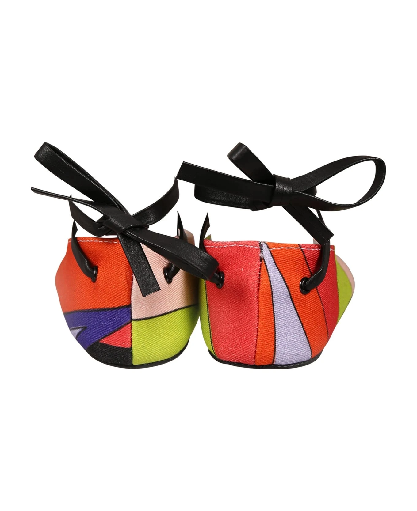 Multicolor ballet flats in fabric, with leather sole, closure with leather laces. It is embellished with an all-over iconic print.