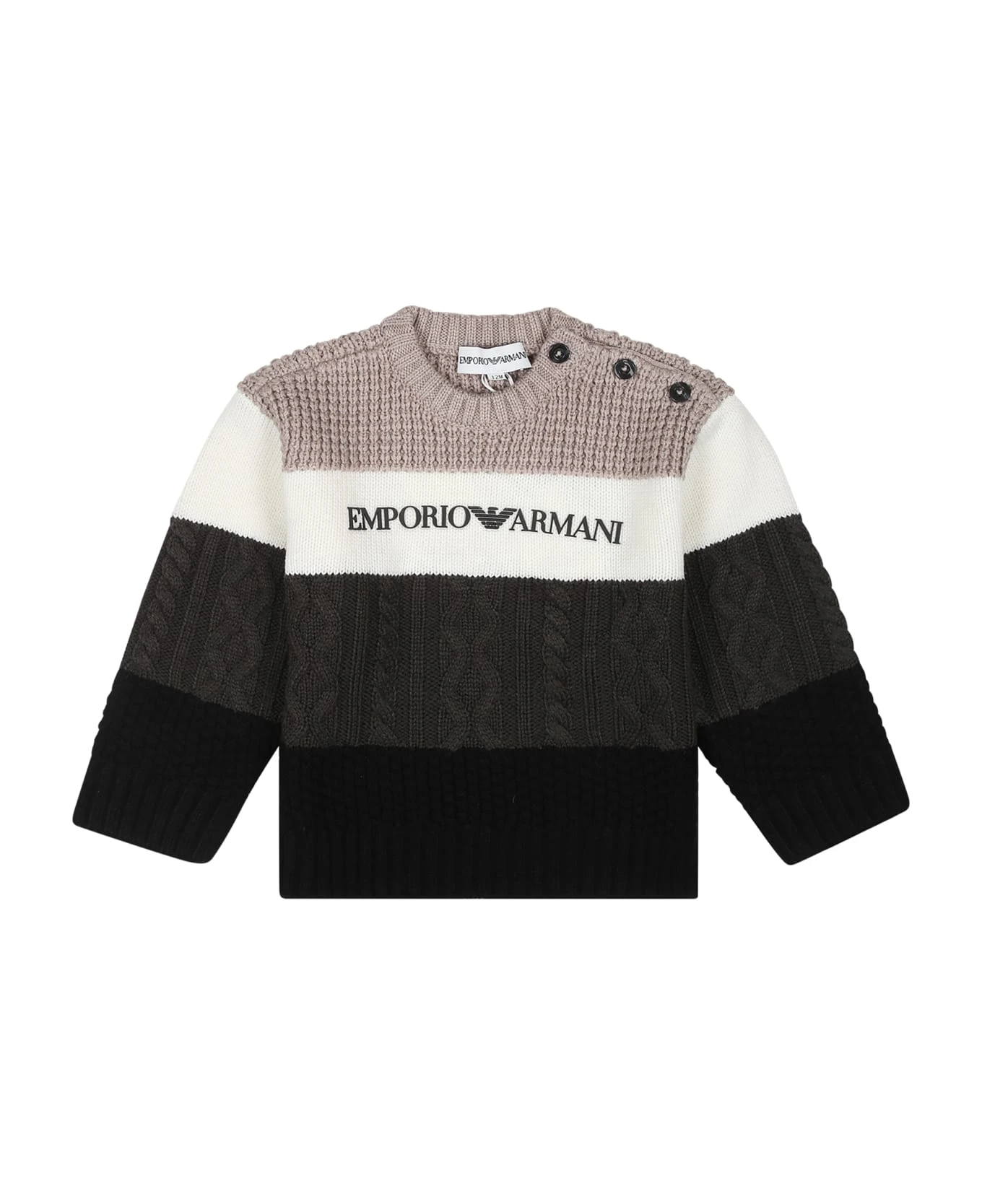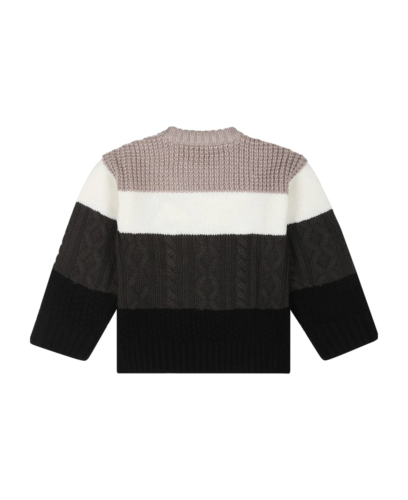 Multicolor sweater in wool blend, with cable and rice grain workmanship, long sleeves, crew neck, ribbed cuffs and hem, button closure on the shoulder. It is embellished with rubberized logo and iconic eagle on the front.