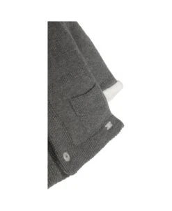 Grey coat by Tartine Et Chocolat made of knitted fabric with white faux fur lining, adorable pockets, hood with pompon and front closure with buttons. Perfect for keeping warm, it offers real comfort to your baby.