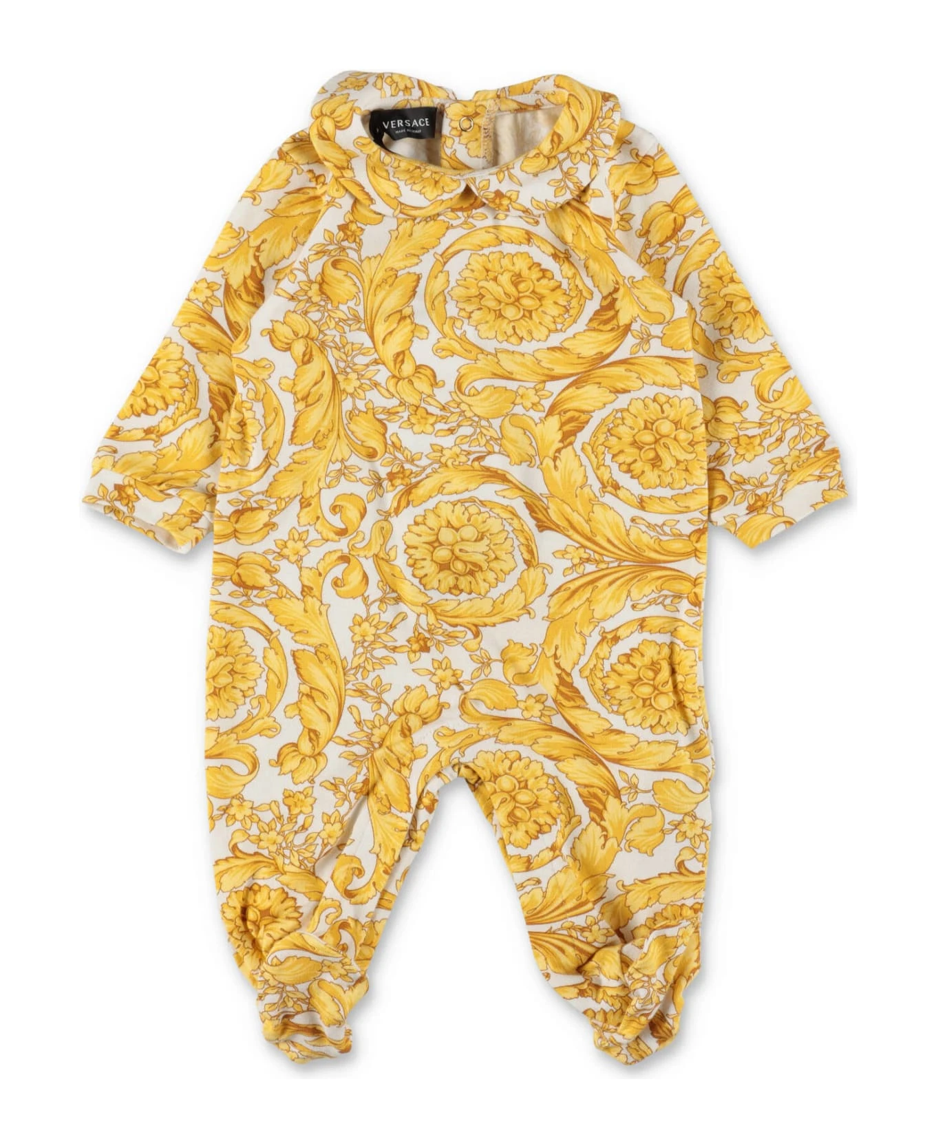 Versace Set Regalo Da Due Pezzi Stampa Oro In Jersey Di Cotone Con Tutina E Cappello Baby Boy from Versace