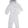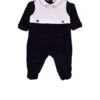 White chenille babygrow, with long sleeves, with light blue rounded collar, feet and snap button closure on the back. It is embellished with light blue band and star with “My star” written on the front.